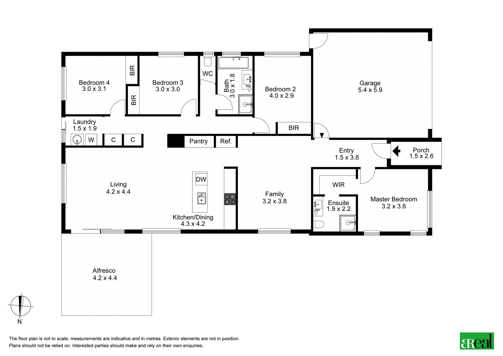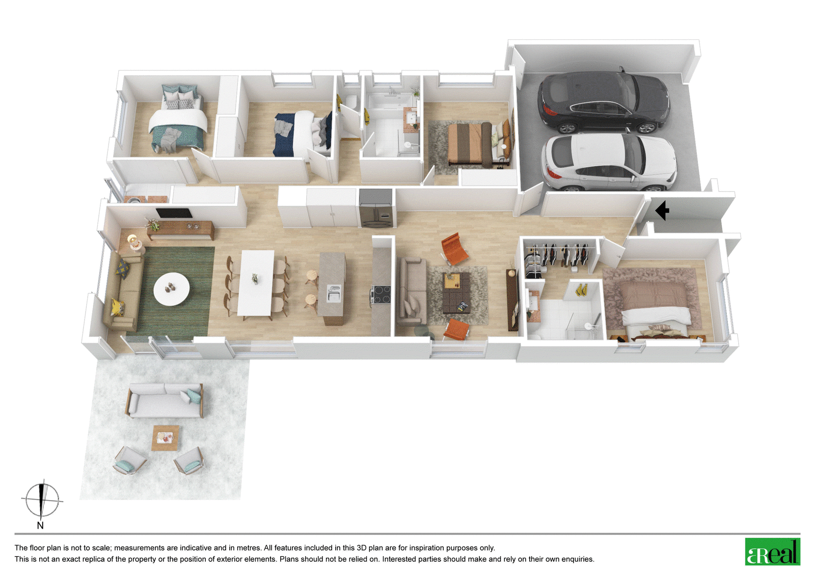 For privacy, the master is separated from the guest bedrooms and is complete with its very own walk-in robe and ensuite. Built-in robes service the guest bedrooms plus there's also a laundry, with external access, a central main bathroom and a double garage with internal access.