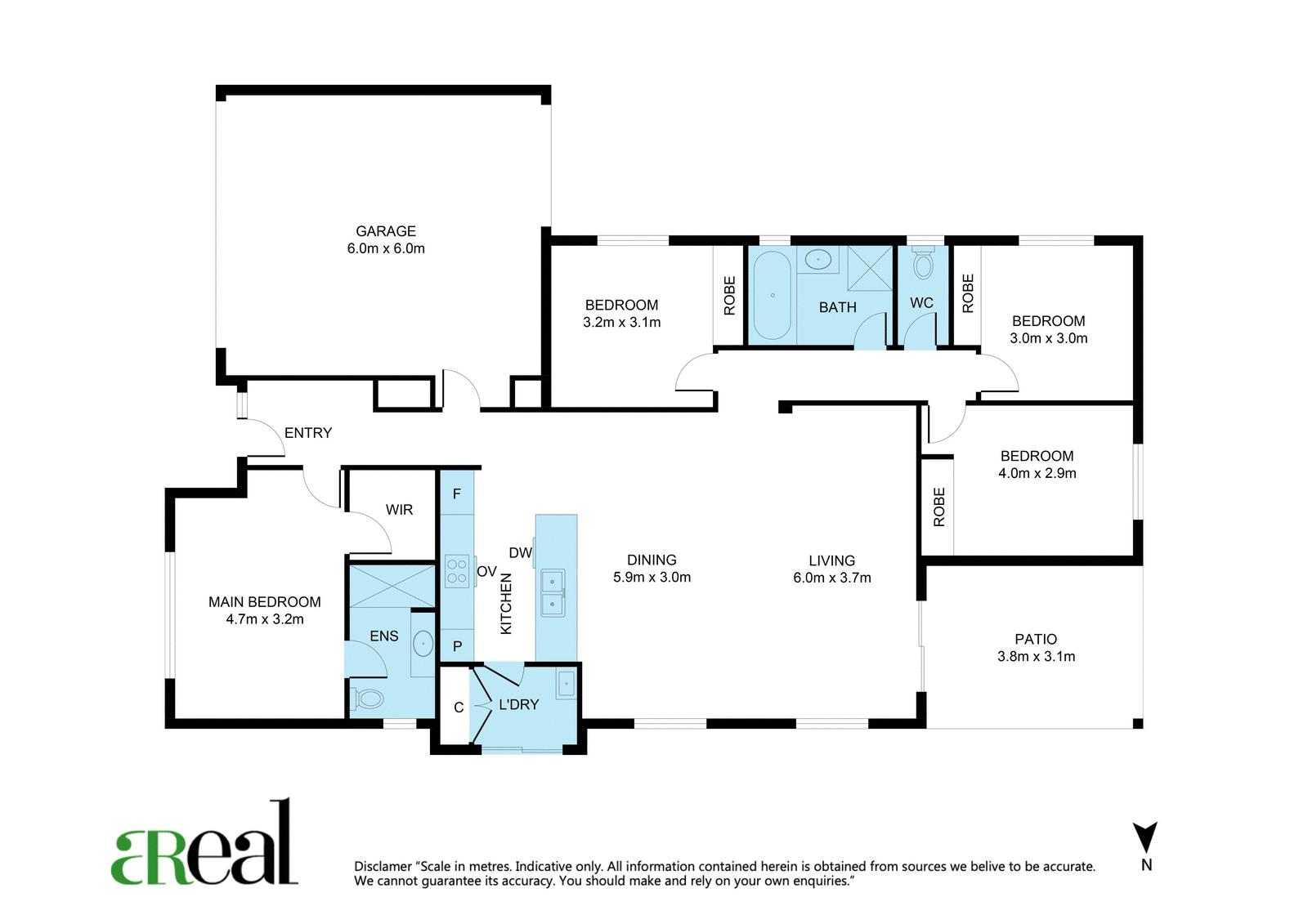 The guest bedrooms all have built-in robes and are just steps from the main bathroom with a separate bath, shower and water closet. For privacy, your master is separated and is complete with a walk-in robe and ensuite. Adding to the appeal of this impressive home are the double garage, the internal laundry and the security screens throughout.