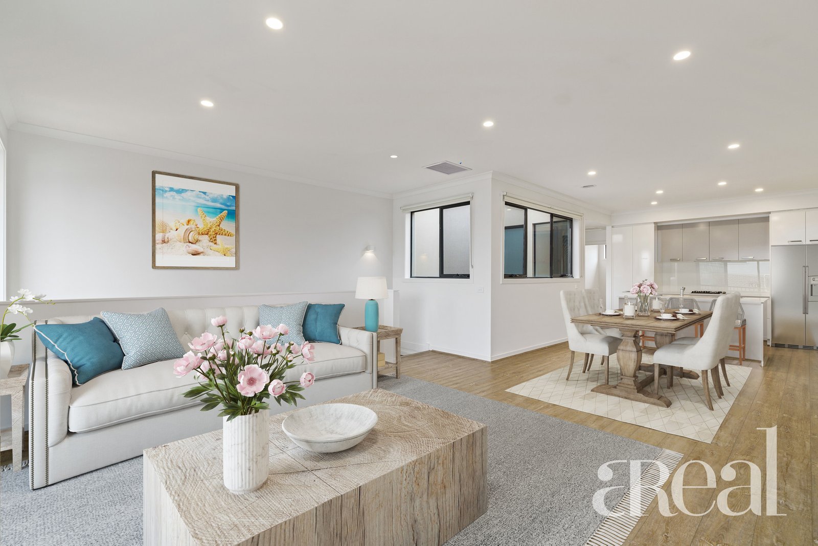 On-trend flooring flows underfoot and continues throughout the kitchen which also boasts a centre island and sweeping benchtops. A suite of quality stainless steel appliances will make preparing meals a pleasure whether that's an intimate dinner for two or a gourmet feast for friends and family.