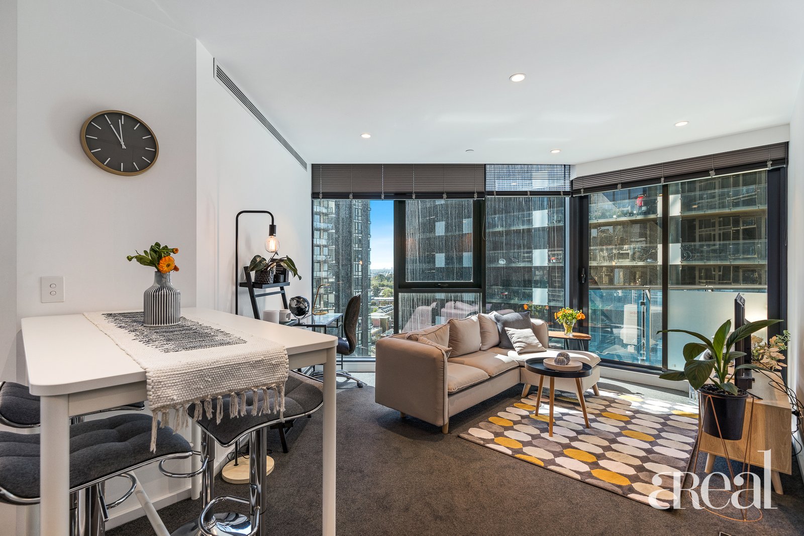 There are two good-size bedrooms, both with built-in robes and floor-to-ceiling windows while a central bathroom also services the apartment. Laundry facilities are on offer in the bathroom plus there's a small covered balcony off the living area where you can start the day with your morning coffee.
