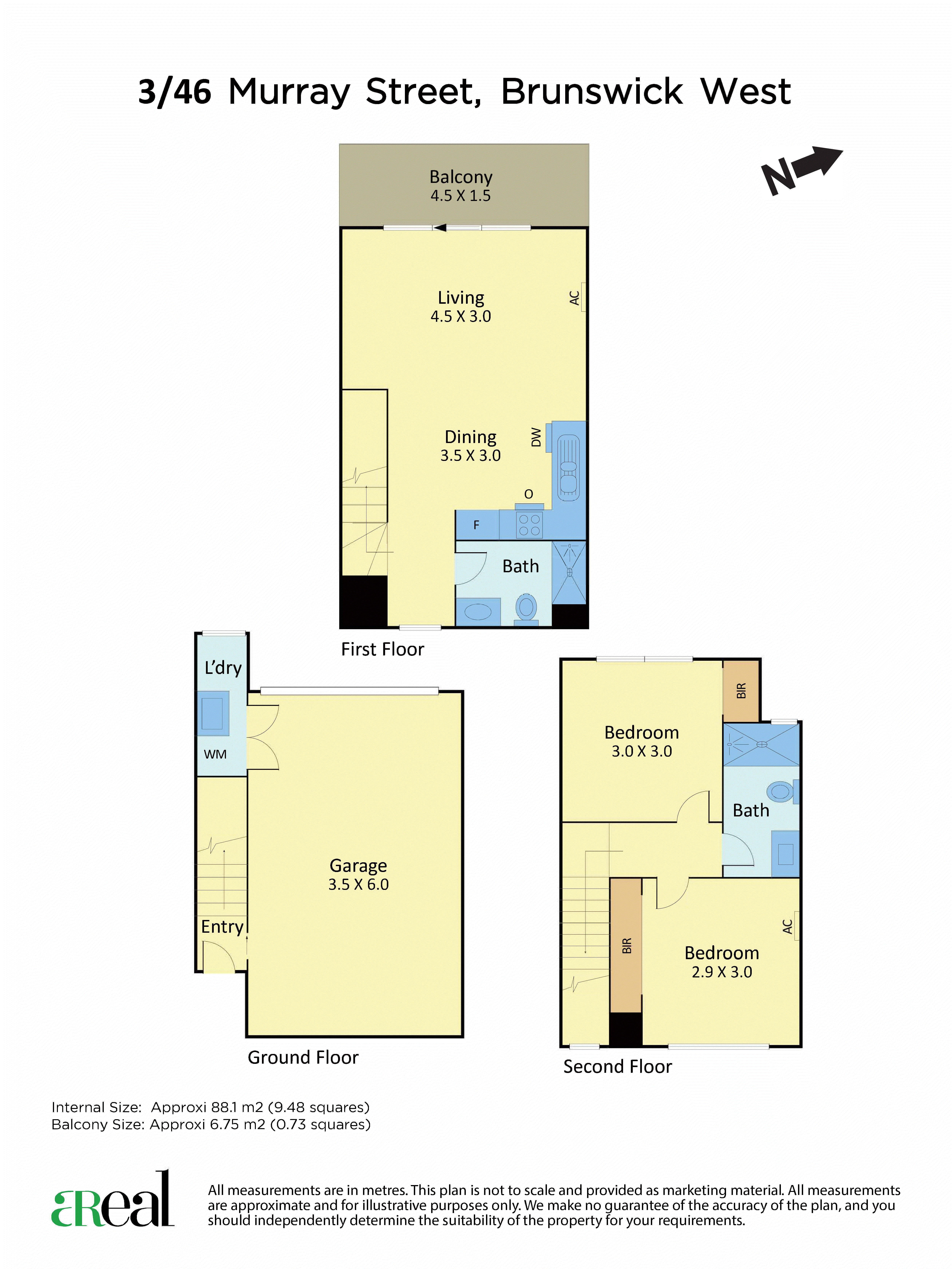 A bathroom completes this level while upstairs, you'll discover two good-size bedrooms including the master with air-conditioning. Built-in robes service both the rooms along with the central bathroom with a large shower and an on-trend vanity. Nestled on the ground floor is a generous 3.5x6-metre lock-up garage with internal access to the home along with a compact laundry with a sink.