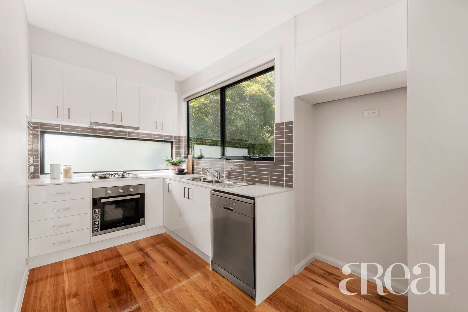 The ground floor contains the single garage and laundry with stairs to the upper levels. The main floor is stylish and sunlit with the open plan lounge, dining, and kitchen with quality stainless steel appliances creating the hub of the home. With polished floorboards, high ceilings, and a brilliant balcony for enjoying outdoor time at home, this residence invites you to relax and stay a while.