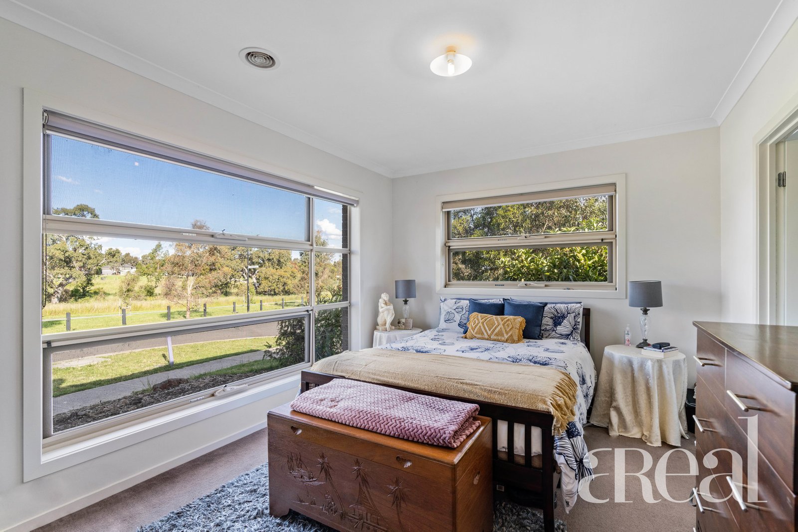 All three of the guest bedrooms are nestled in their own section of the floorplan with built-in robes and easy access to the laundry and main bathroom with a separate bath, shower and toilet. For privacy, the master suite is separated and offers views over the front yard along with a walk-in robe and an ensuite.