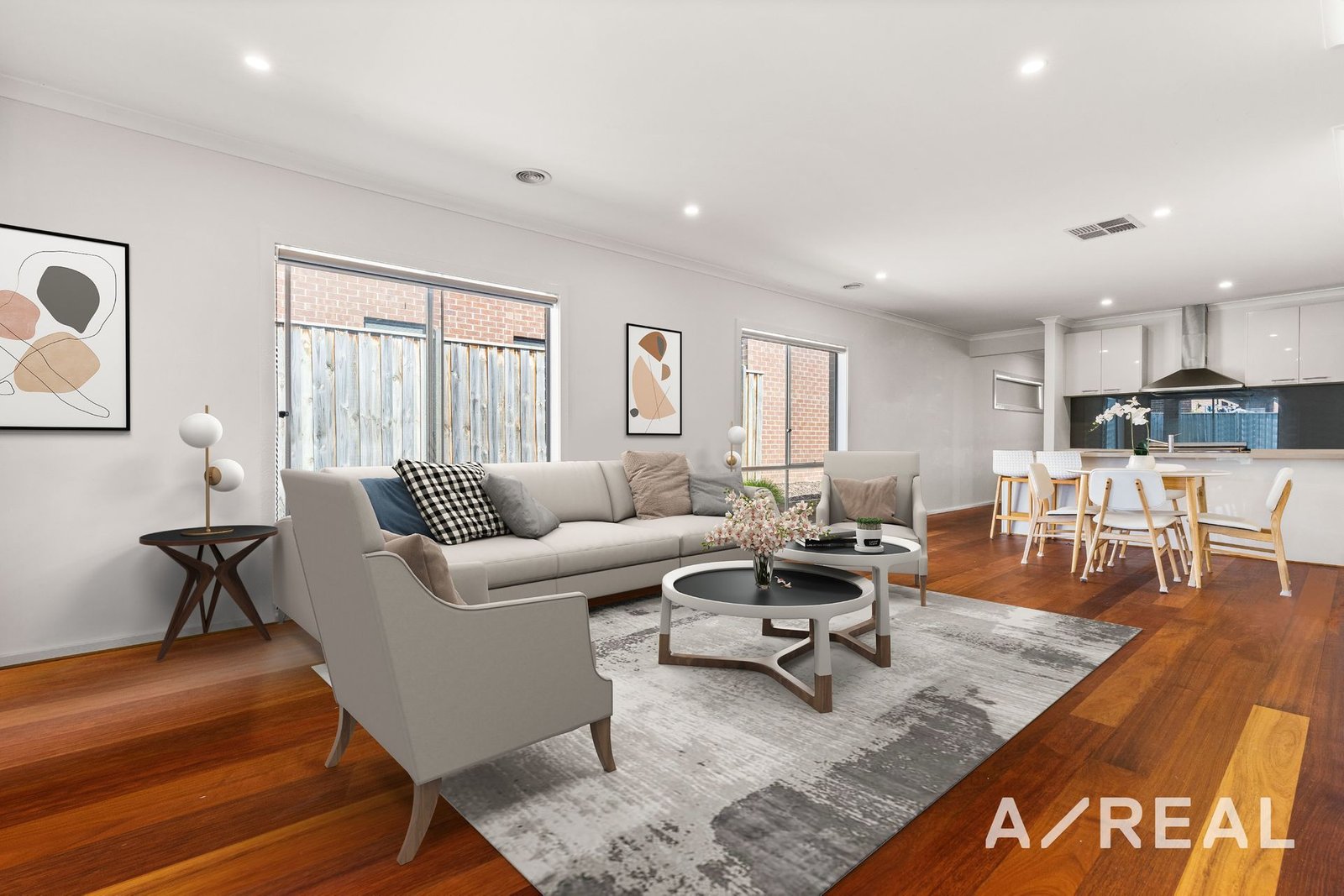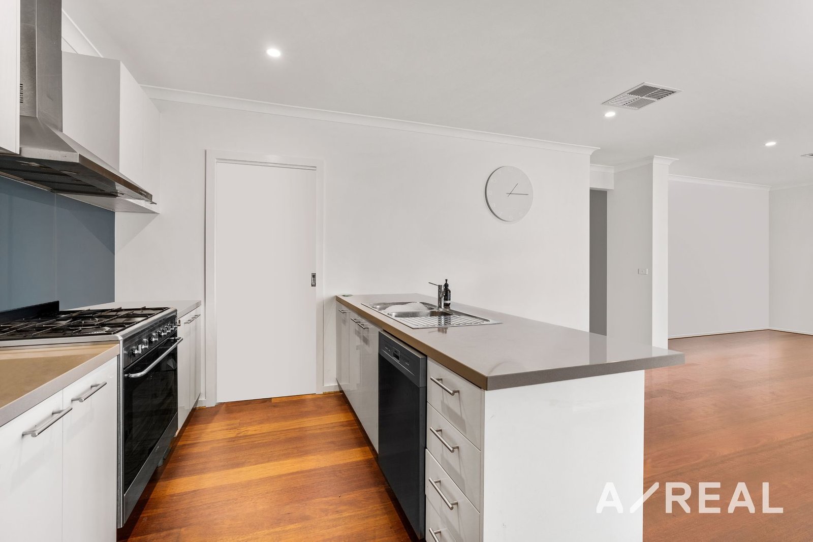 This residence has stunning timber floors and a fresh modern appeal with ducted air-conditioning for year-round comfort. There's a formal lounge/living room at the entry with a sunny view of the front garden. The hall then opens out to the spacious open-plan living area for the dining and family room.