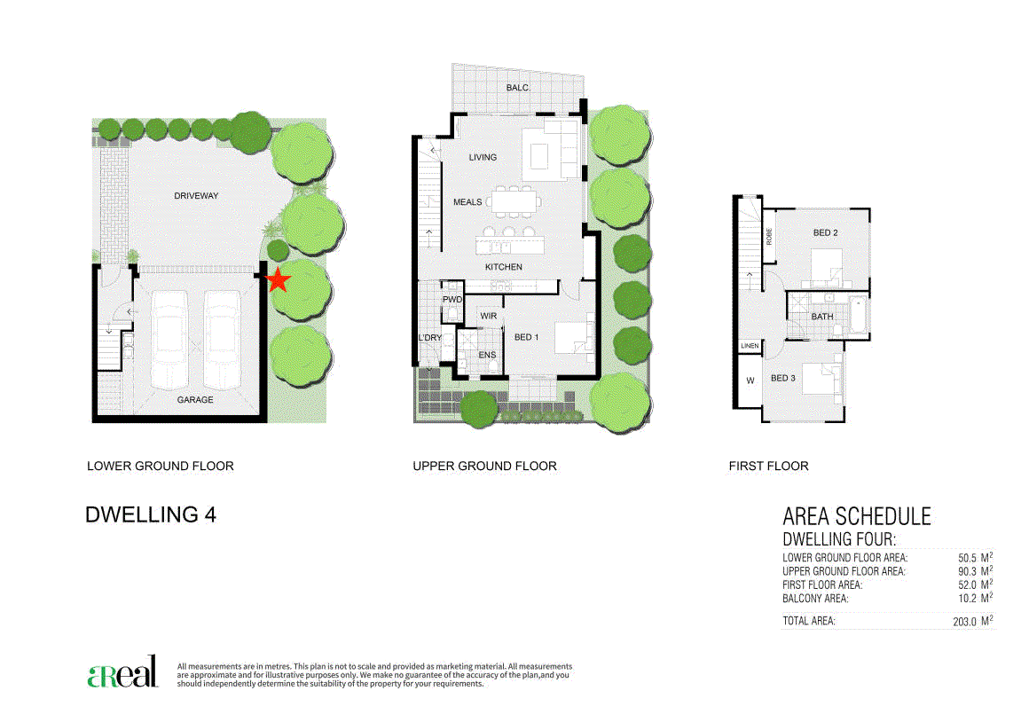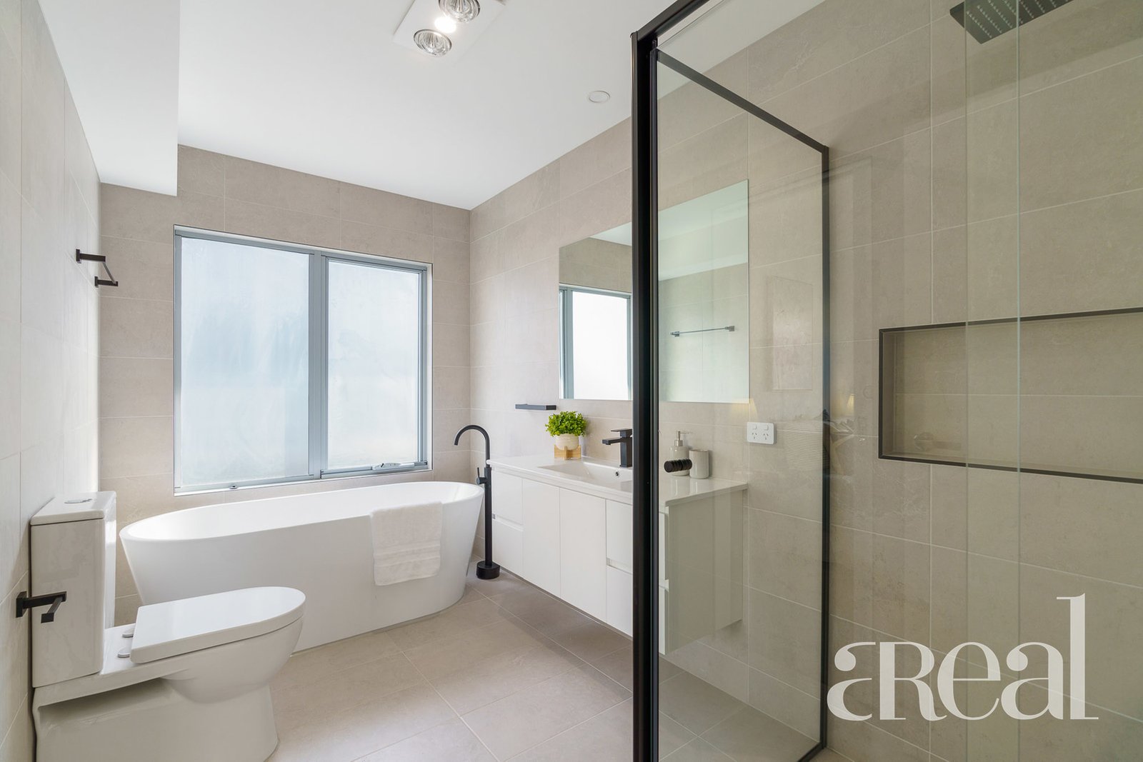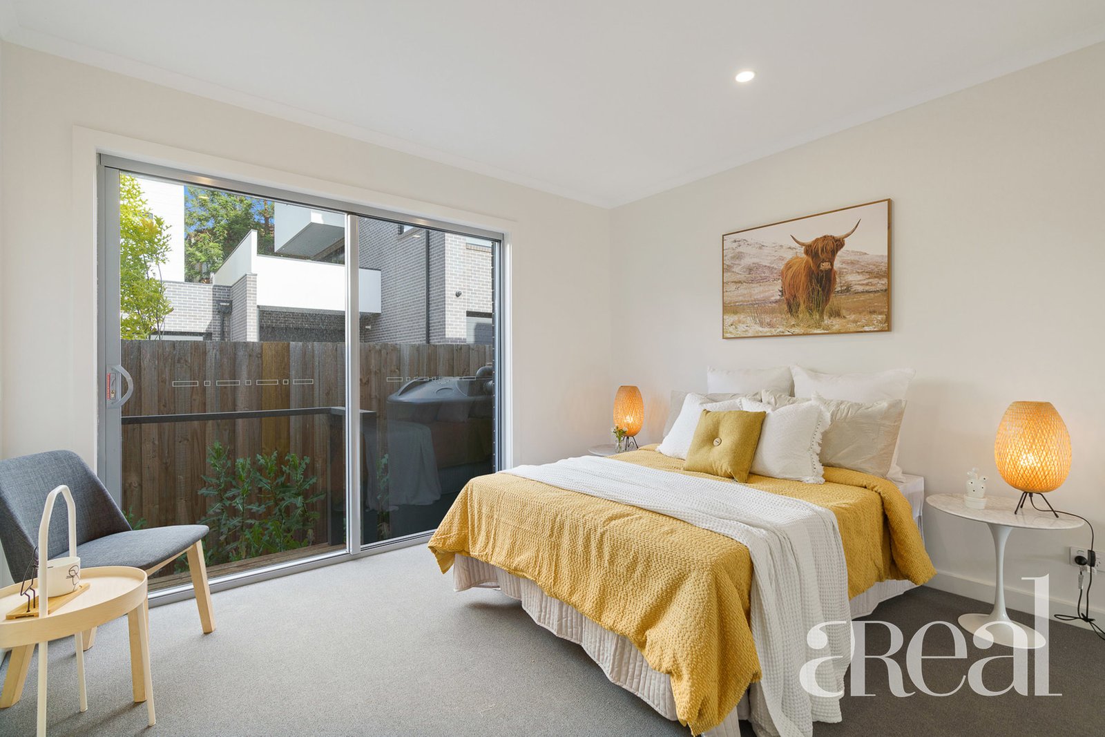 A powder room and laundry are also on this level along with the master suite with a walk-in robe, an ensuite and direct access to the rear patio and backyard. The guest bedrooms are both perched on the upper level with each offering good-size robes and bedroom three enjoying ensuite access to the two-way main bathroom with a separate bath and shower.