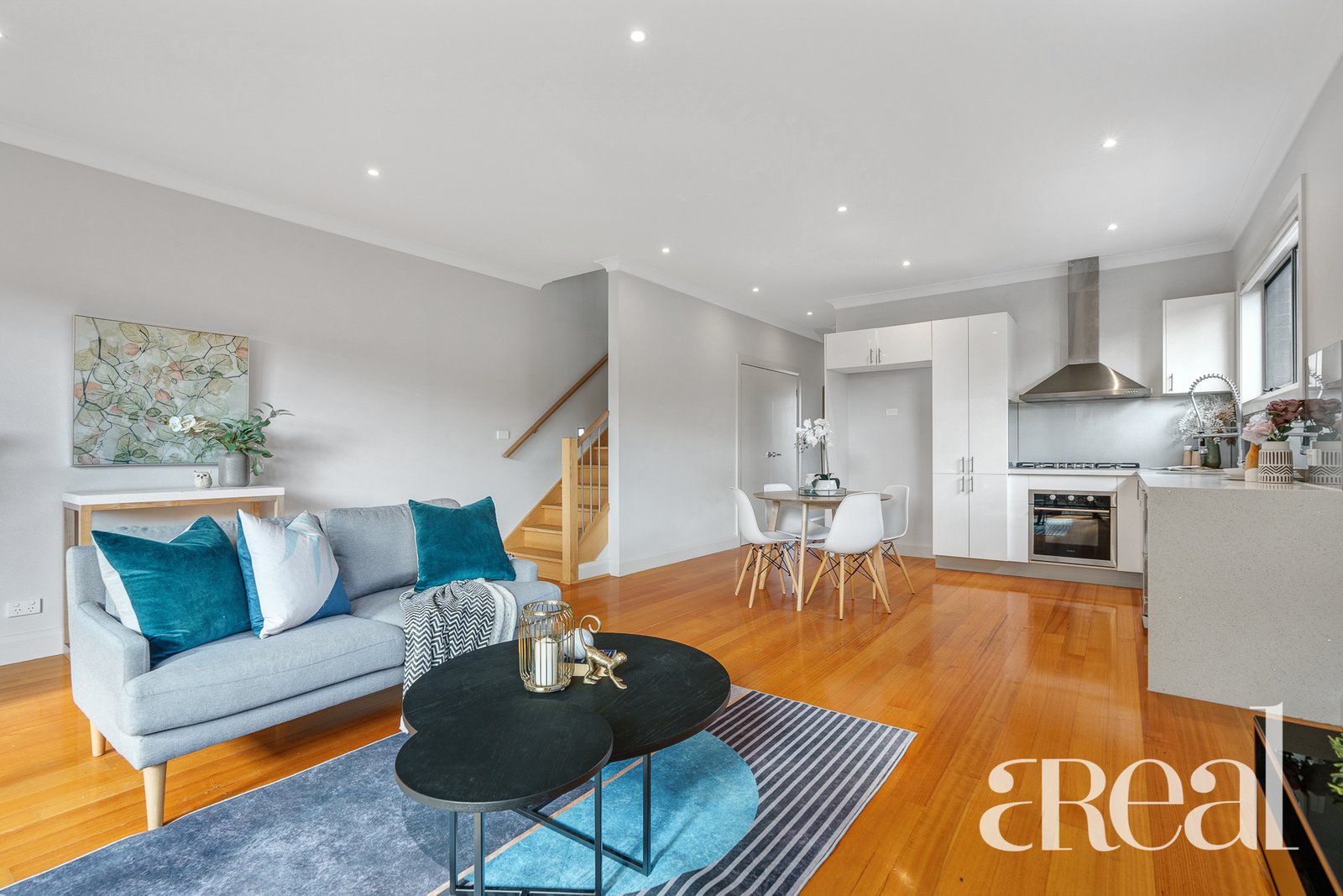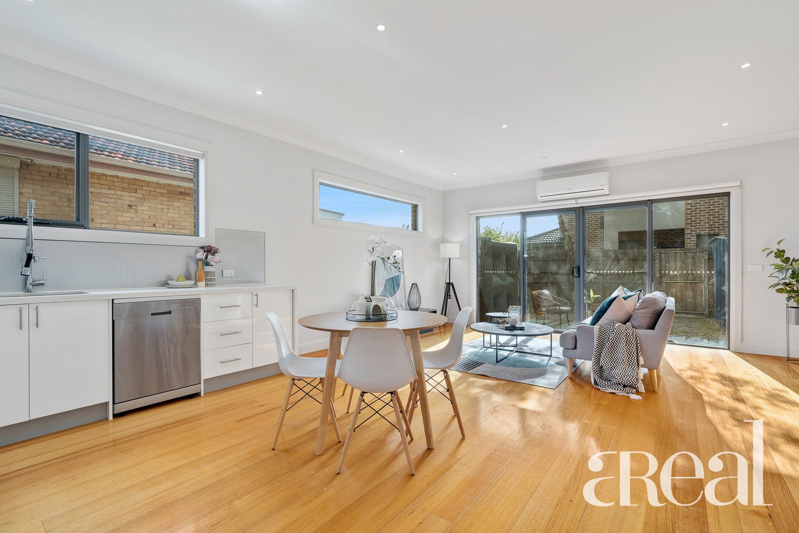 Whether you're hosting friends or relaxing with the family, you will love to gather in the open-plan kitchen, living and dining space. The light-filled heart of the home features timber floors and muted colour tones along with on-trend downlights and a free-flowing design that promotes a calming feel.