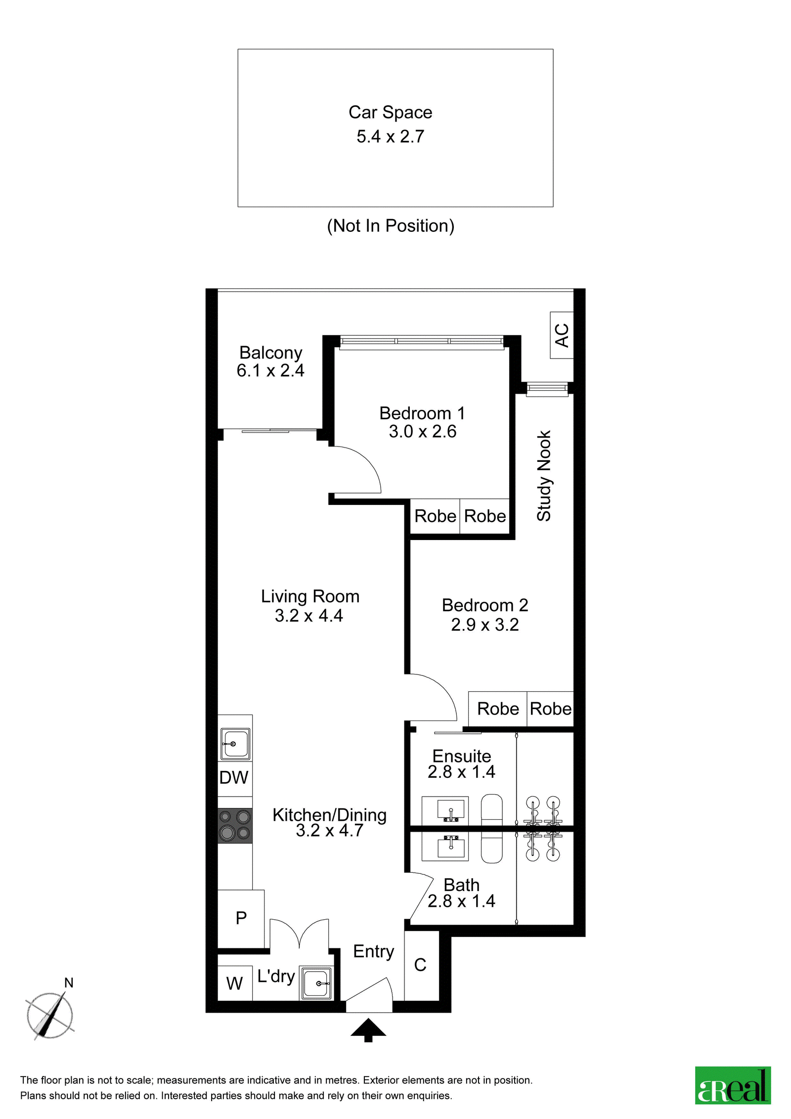 There are two bedrooms, with built-in robes, including one bedroom with a study nook and a private ensuite. A well-appointed main bathroom and a European-style laundry nook complete the floorplan plus there's air-conditioning, modern lighting throughout and a single parking space for convenience.