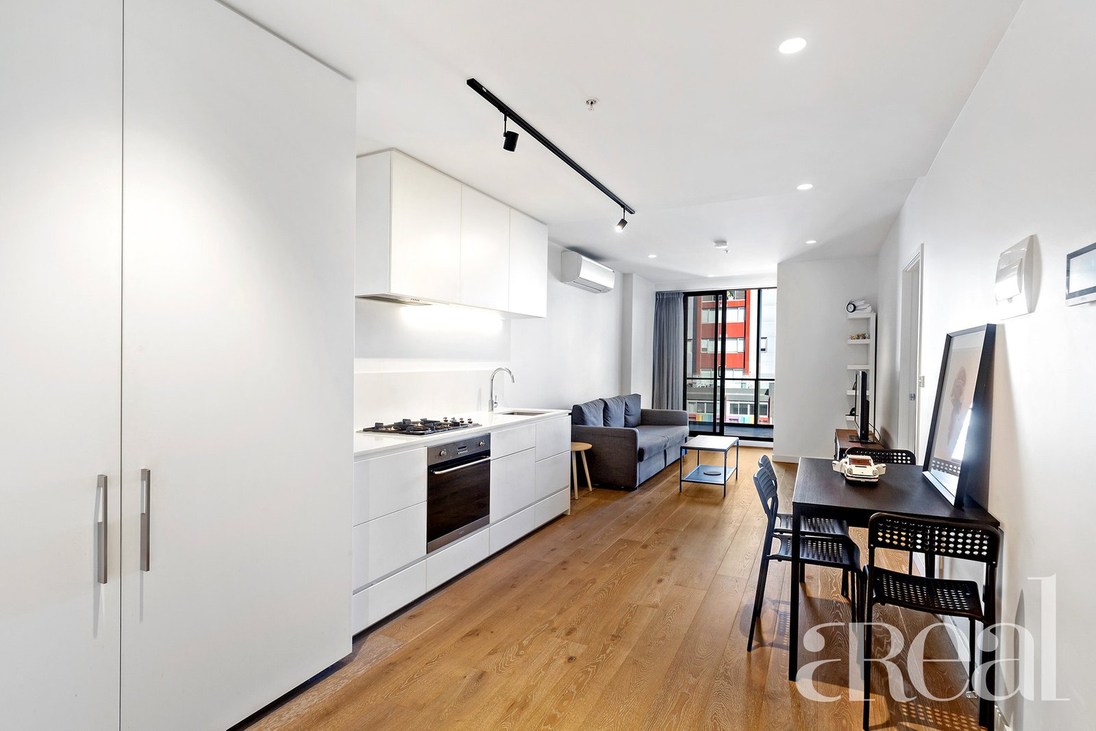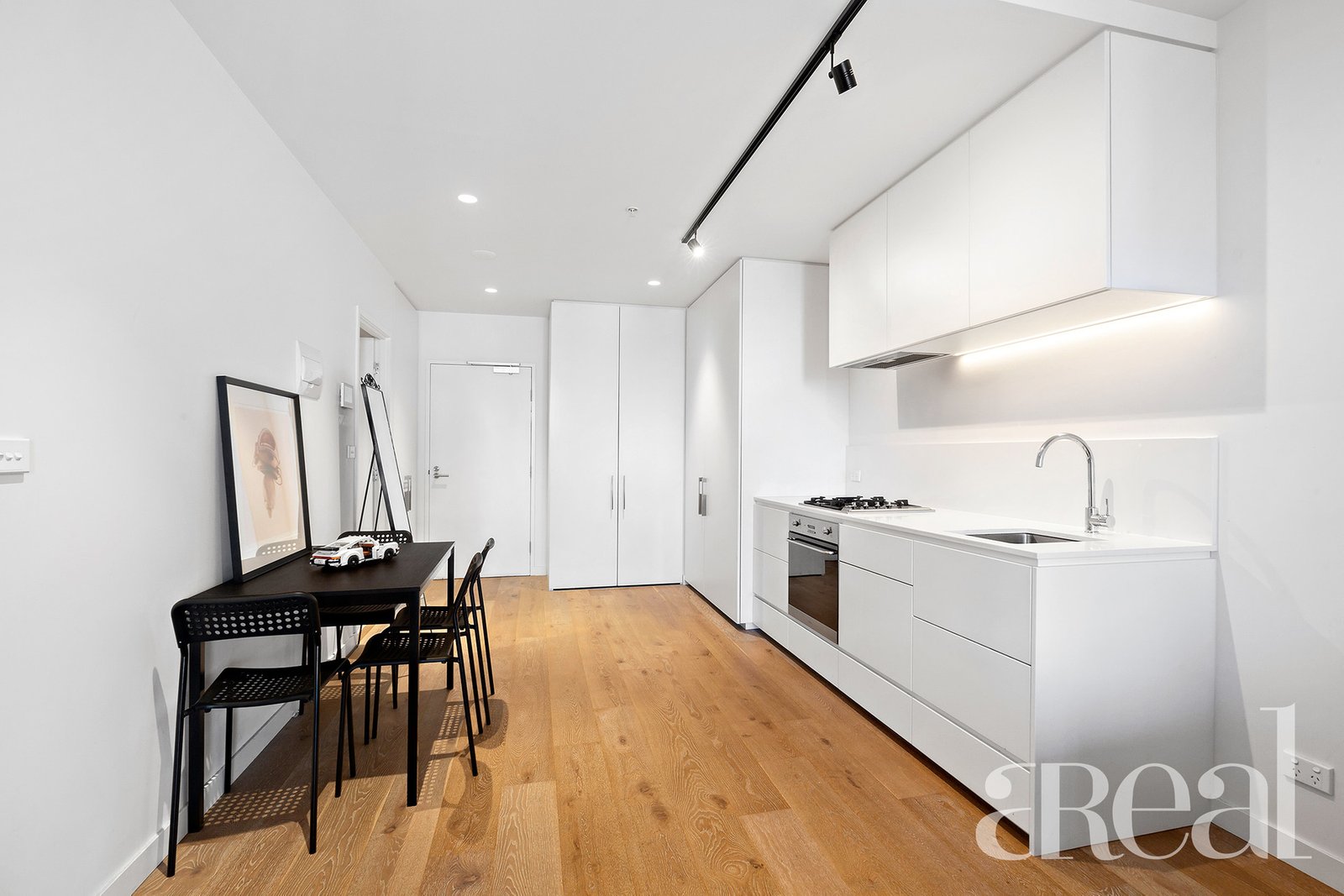 From the entry, on-trend wide-plank flooring flows underfoot and draws you into the open-plan living space. Framed by crisp white walls, this light-filled haven will be a favourite place to retreat from the hustle and bustle of city life.
