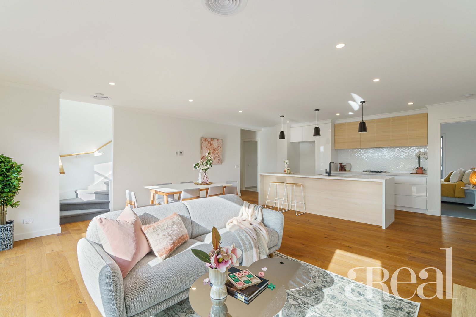 Entry is via the lower ground floor where you will find a double garage with internal access to the home for added security and peace of mind. From here, you can make your way upstairs to the open-plan main floor with a generous gathering space that is light-filled and inviting.