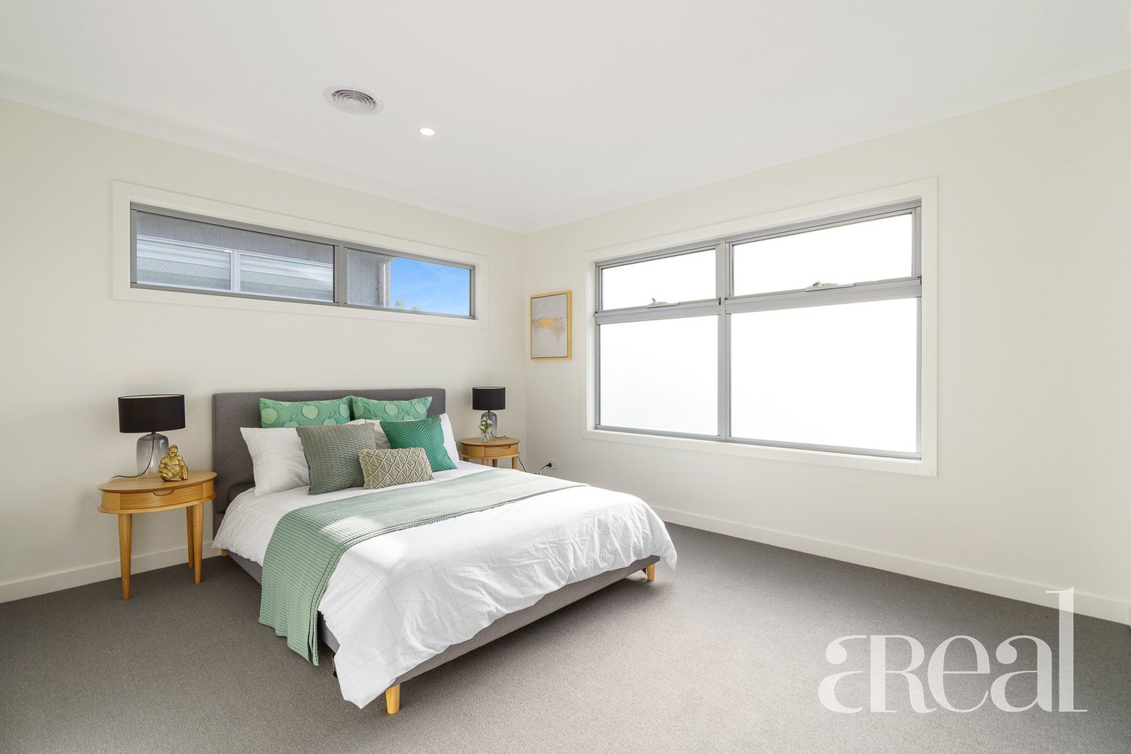 A powder room and laundry are also on this level along with the master suite with a walk-in robe, an ensuite and direct access to the rear patio and backyard. The guest bedrooms are both perched on the upper level with each offering good-size robes and bedroom three enjoying ensuite access to the two-way main bathroom with a separate bath and shower.