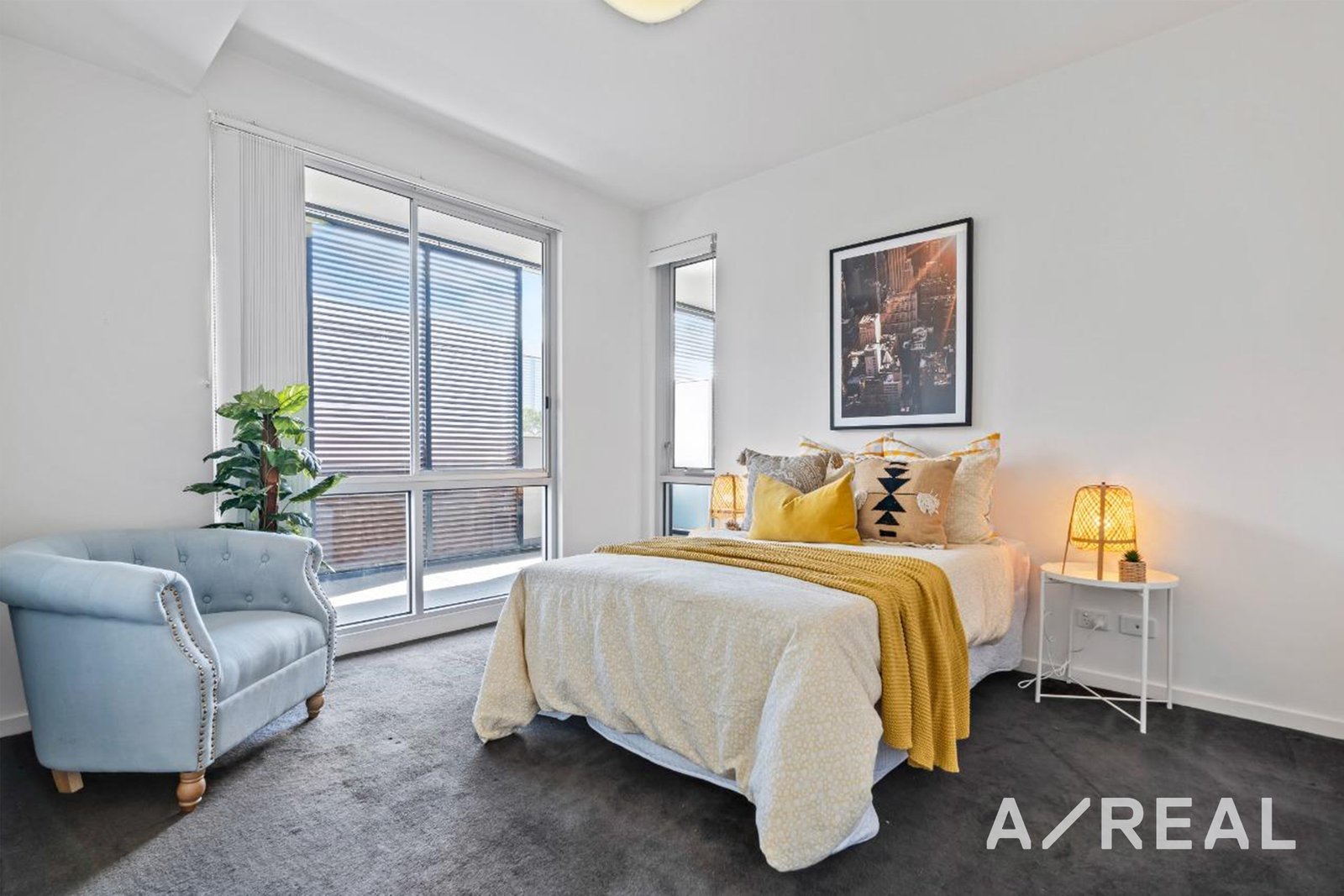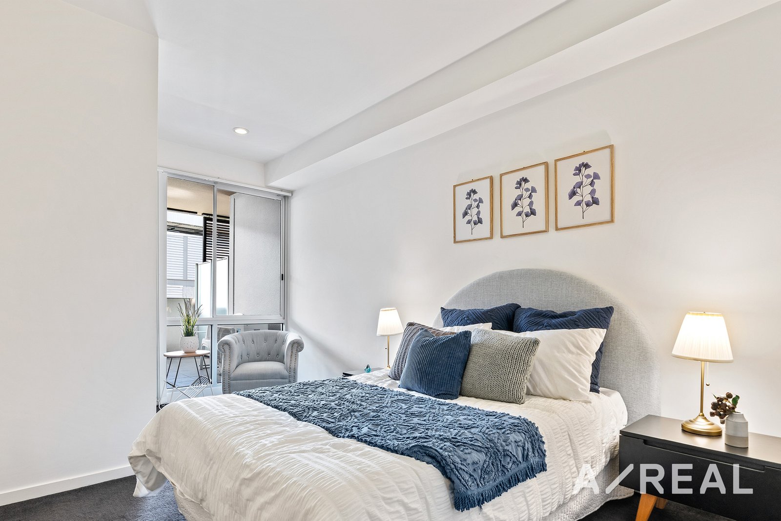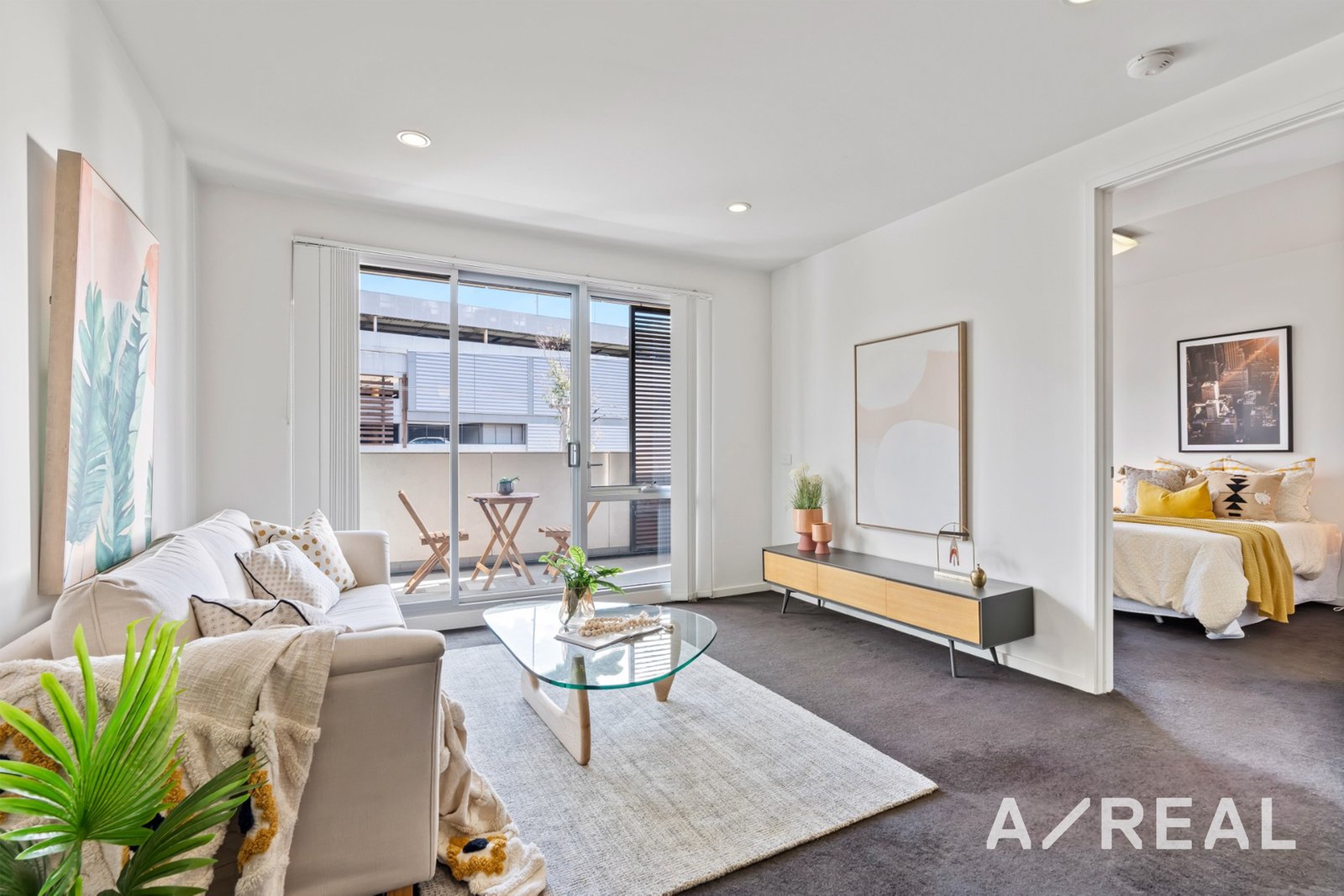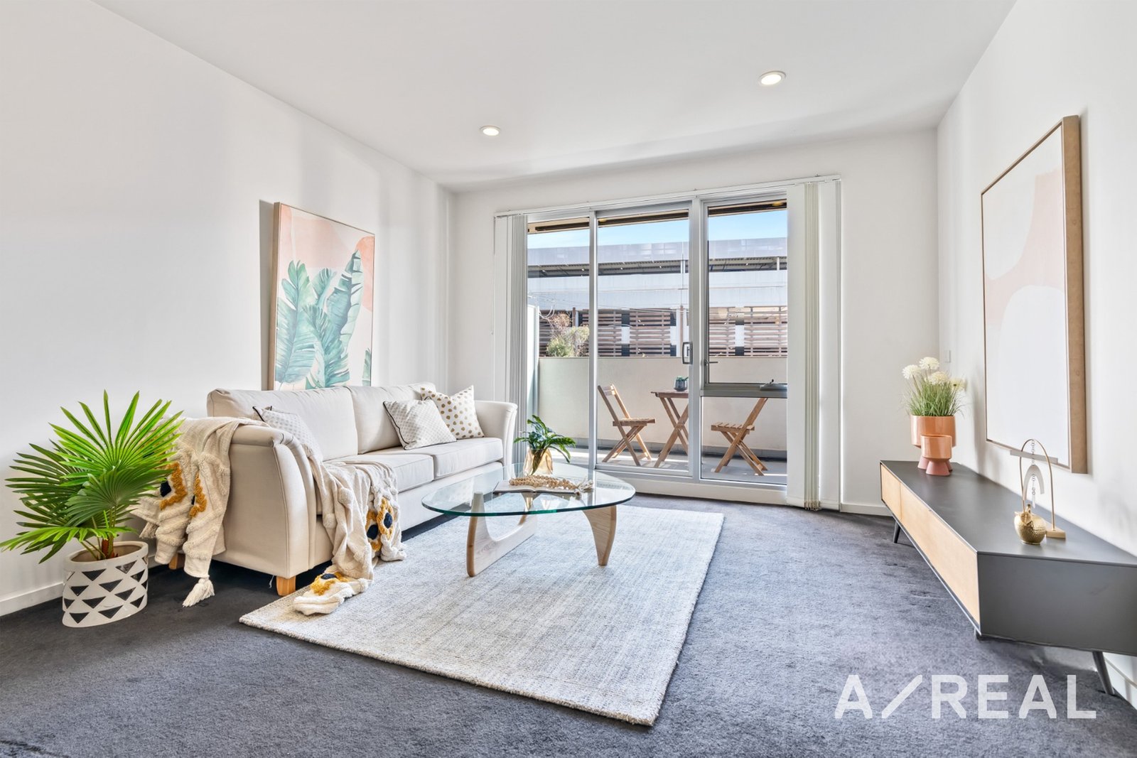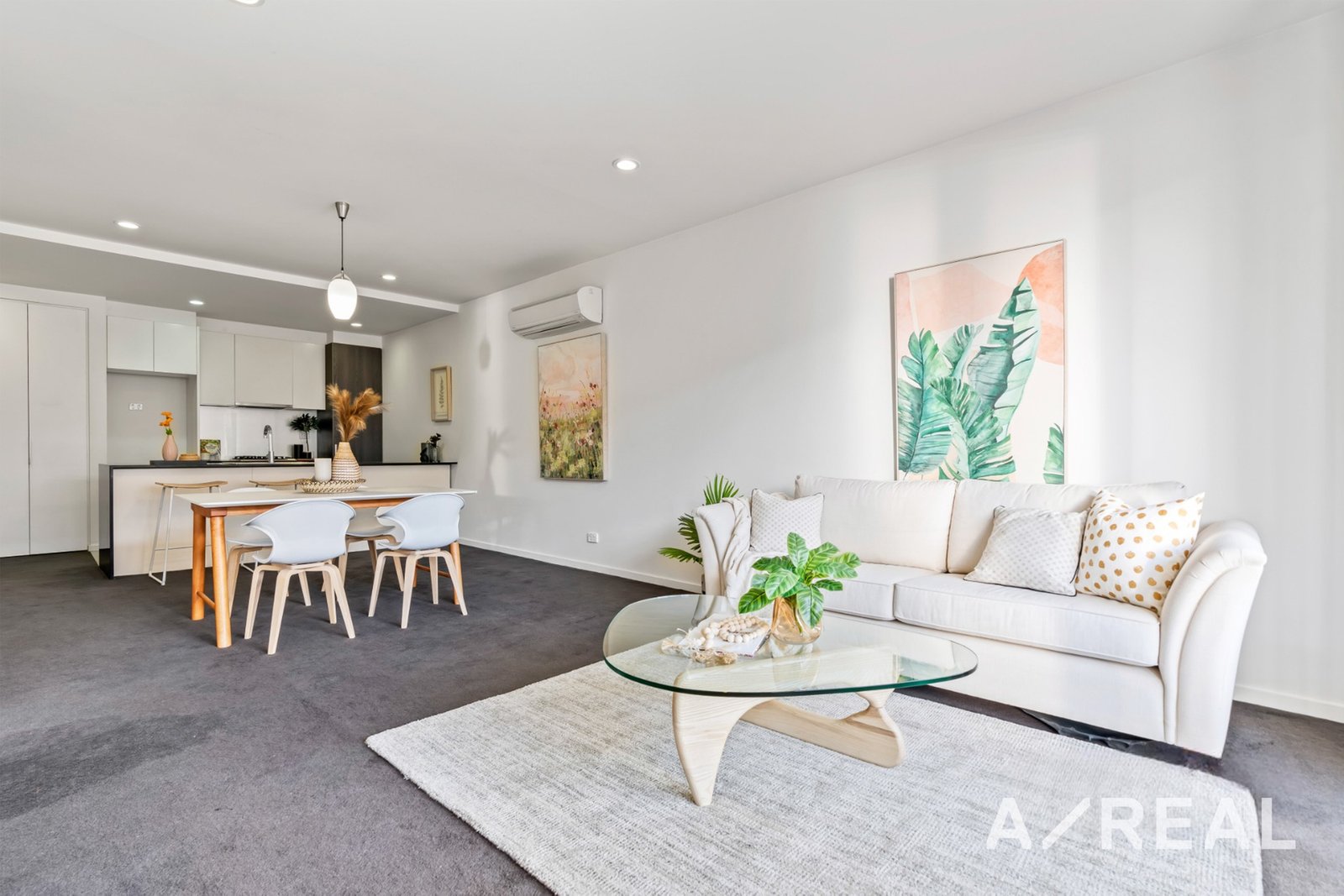 Crisp white walls, on-trend downlights, plush carpet and quality finishes only add to the contemporary appeal of this impressive apartment.