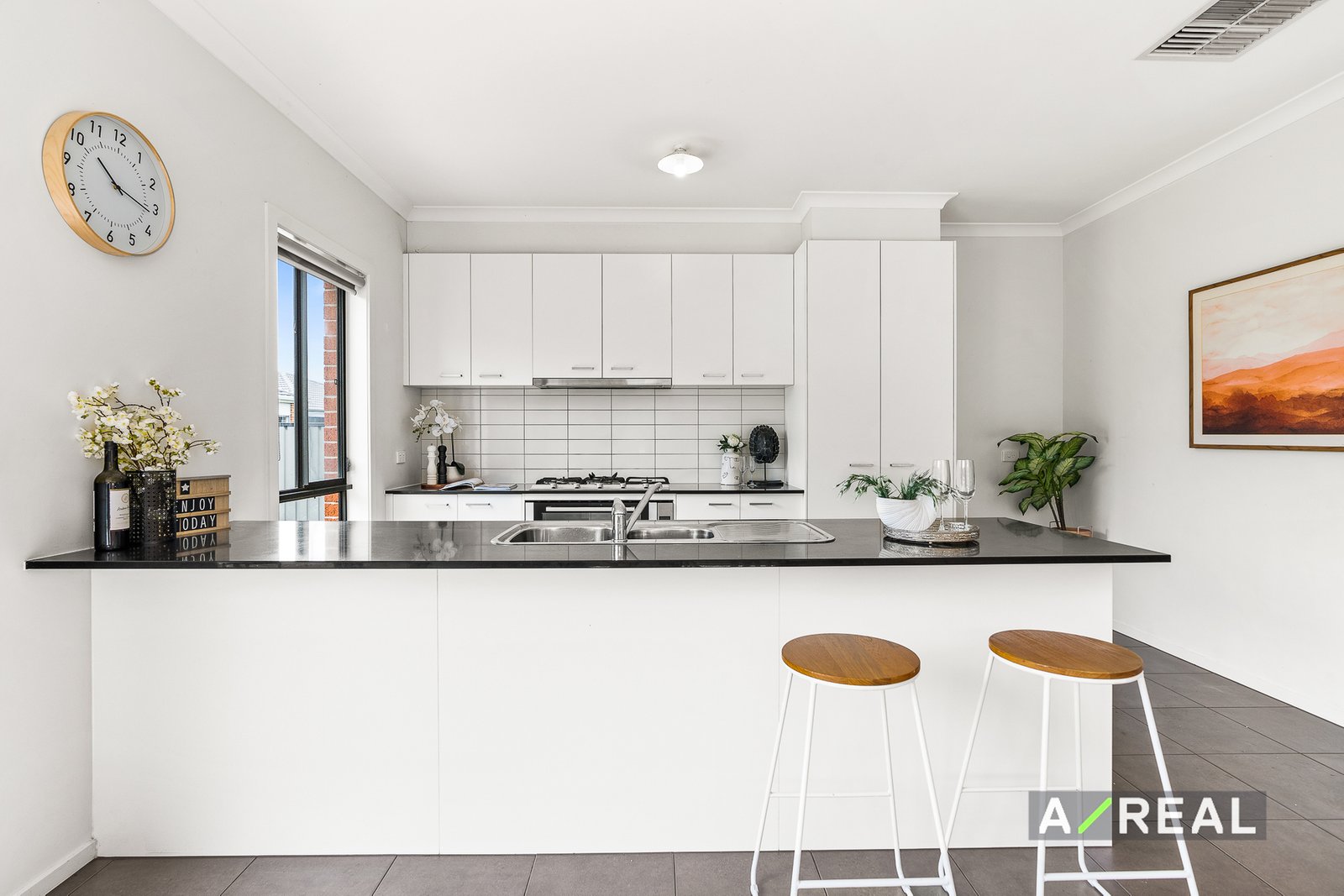 Modern finishes are a theme throughout and the kitchen is no exception, coming well-equipped with stainless-steel appliances, plentiful benchtop space and flawless cabinetry.