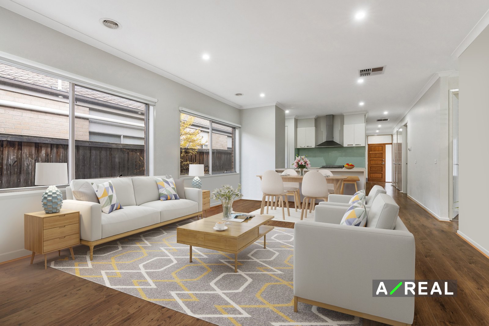 Elegance is evident from the moment you arrive. A beautiful facade with easy-care landscaping welcomes you in where you will find a light-filled interior. From the entry, you'll be swept down to the open-plan living areas. Here, on-trend flooring is set alongside high ceilings and large windows providing both class and serenity. The kitchen is modern and already fitted with sweeping benchtops, quality appliances and a pantry.