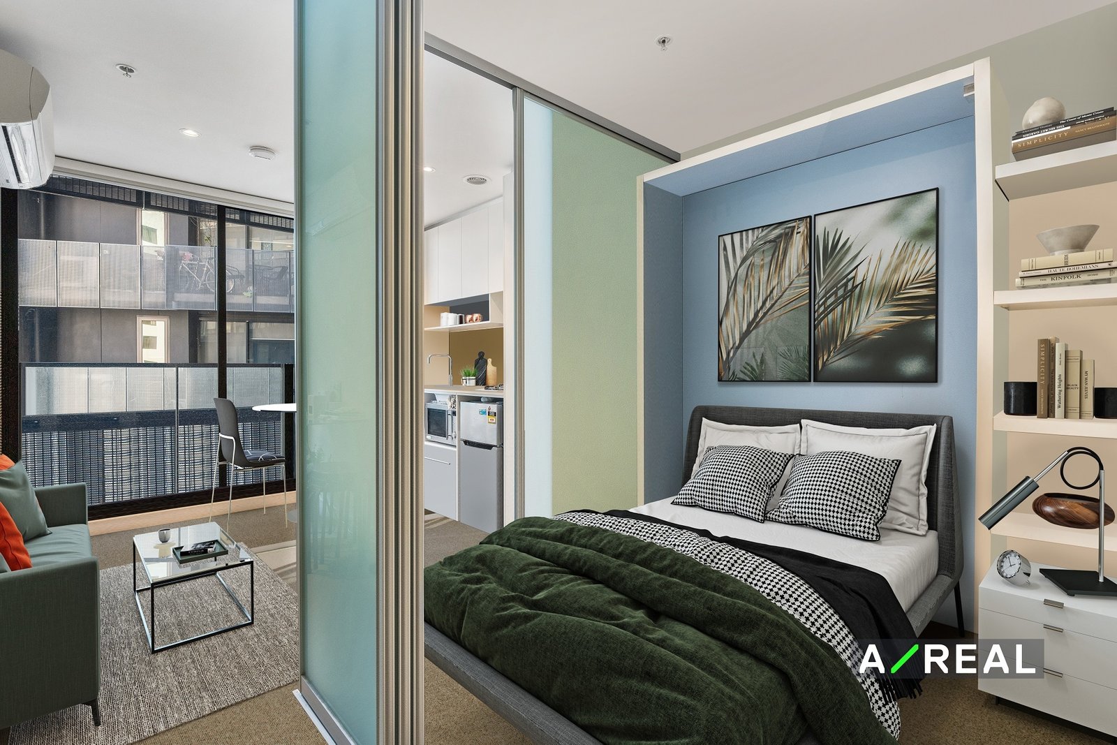 The bedroom has built-in shelving for storage and bi-fold doors so you can keep it open or shut it off. Extending the layout is a stylish bathroom, a laundry nook for convenience, and extra storage cupboards to ensure you capitalise on the living space.
