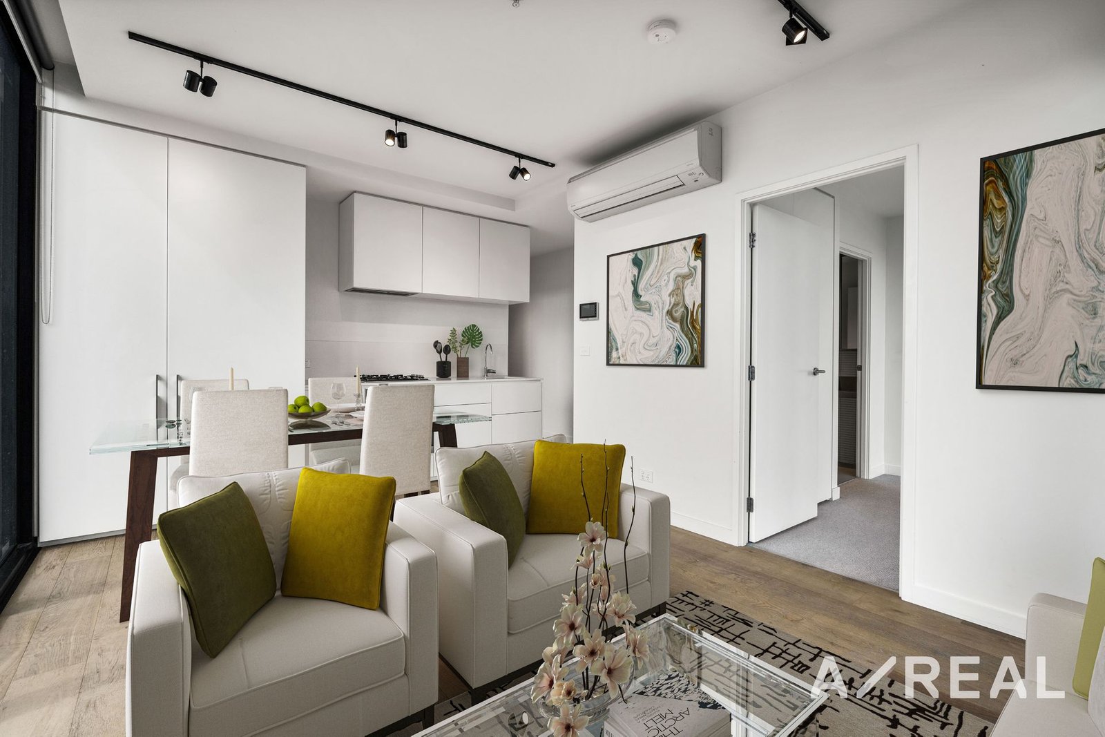 Air-conditioning in the kitchen, dining and living room adds instant appeal as do the oversized windows that draw in an abundance of natural light. The well-equipped kitchen runs along one wall, with stainless steel appliances and a good-size pantry, while the free-flowing floorplan is ideal for those who love to entertain.