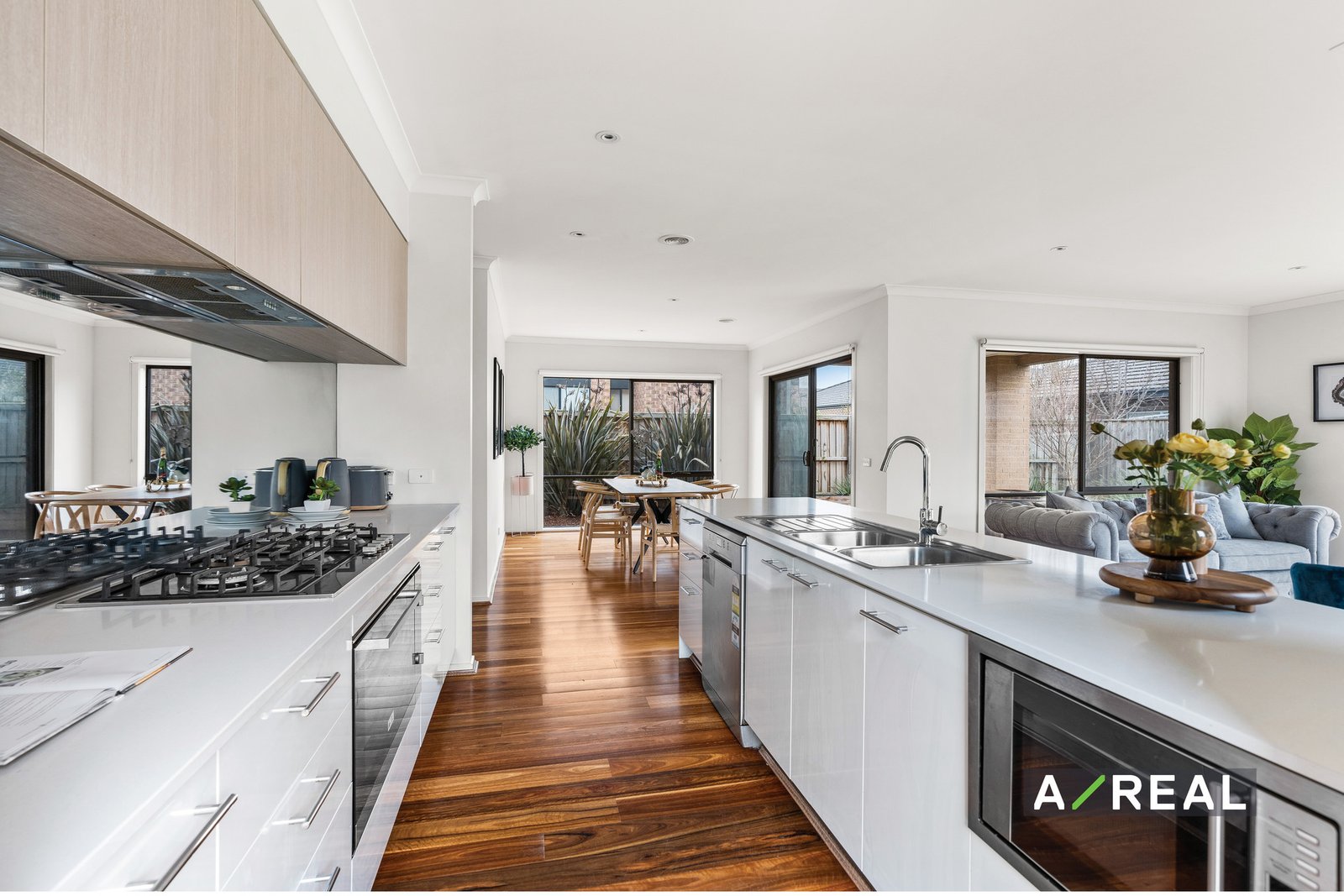 This contemporary two-storey home has stunning polished timber floors and a fresh modern appeal with ducted air-conditioning for year-round comfort. There's a separate and comfortable formal lounge/living room for relaxing with the family. The hallway opens out to the main expansive open-plan living area with ample space for the dining and family room.