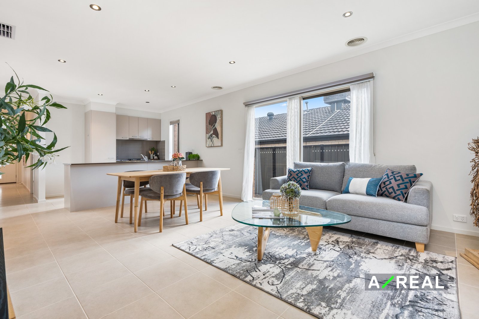 The light-filled living room flows outside to a sunny courtyard – perfect for alfresco dining. This area can also be accessed through a handy door at the rear of the double garage. Active kids will love the grassed and fenced backyard and you could add a BBQ to create an excellent outdoor entertainment area.