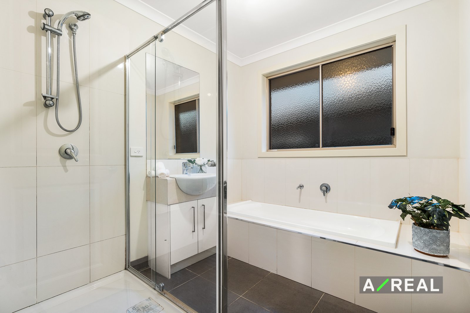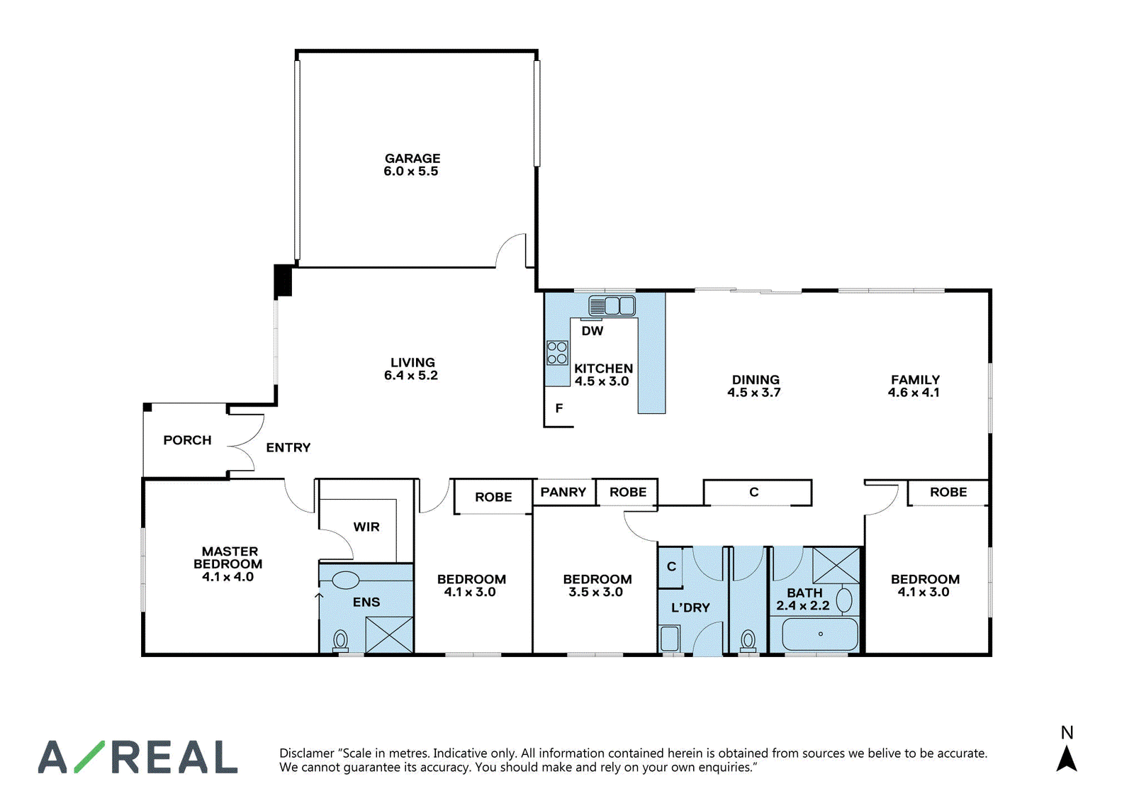 In the spacious master suite, you'll find a large walk-in robe and ensuite with a shower, separate toilet, and lots of vanity storage. The family bathroom allows everyone to get ready with a separate bathtub, and a detached toilet, plus a laundry room with outside access for convenience. The remaining family bedrooms all have built-in robes and there's plenty of storage throughout including a double garage for secure parking with access through to the backyard.