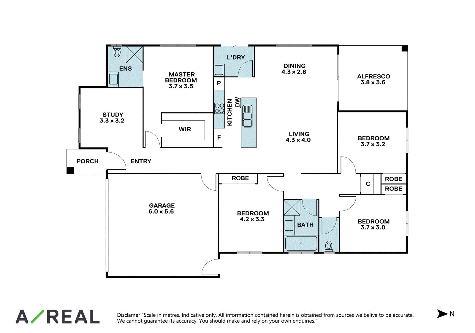 The master bedroom features a walk-in robe and ensuite, bedrooms two, three and four each feature built-in robes, and they are just a few steps away from the main bathroom that has a separate toilet to accommodate busy households.