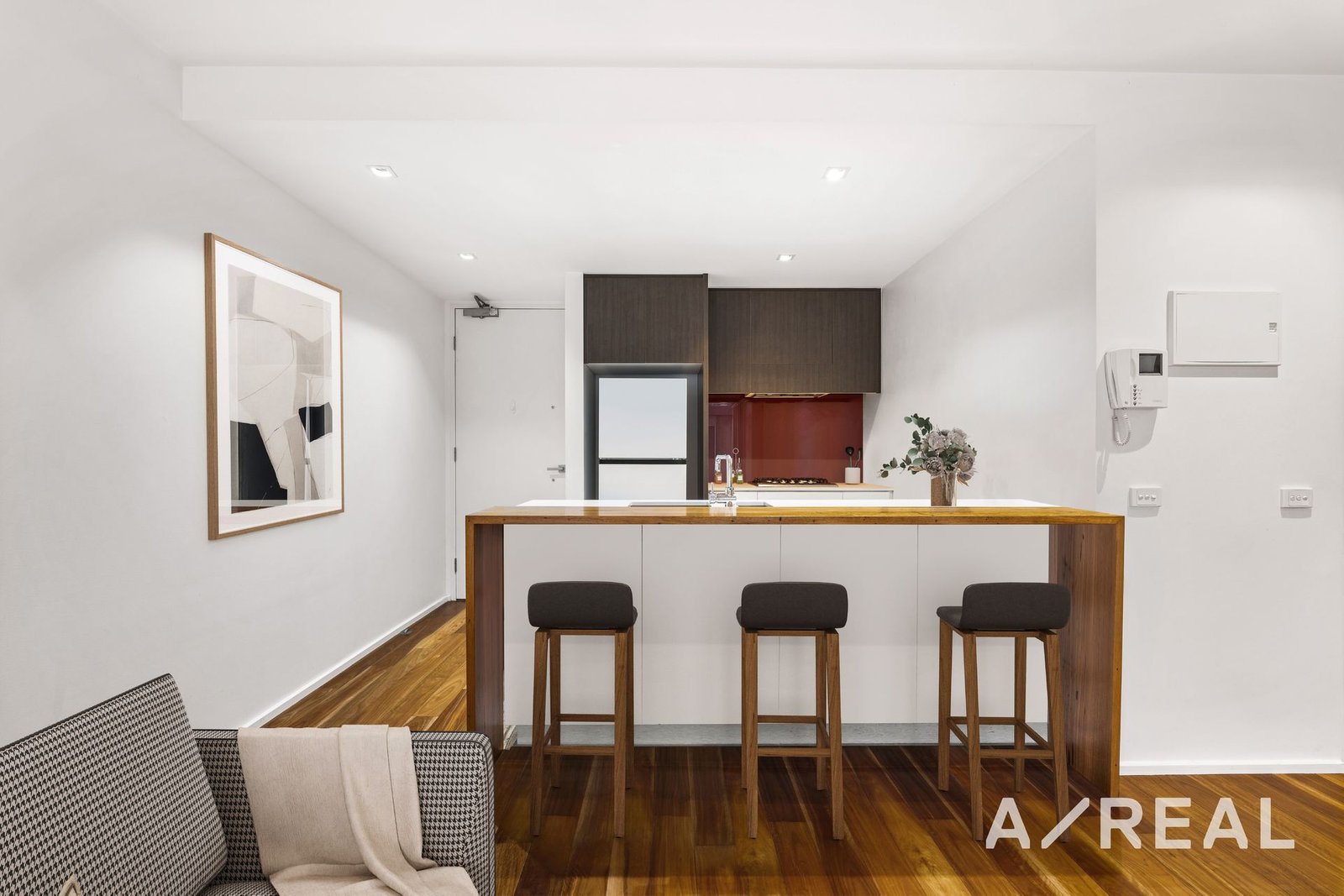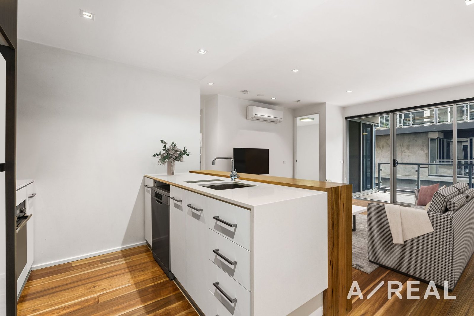 From the entry, you are immediately welcomed into the open-plan kitchen, dining and living zone with timber floors, neutral colour tones and an abundance of natural light. You can step outside to the balcony to host guests and dine alfresco or perhaps you'd like to stay inside and unwind in air-conditioned comfort.