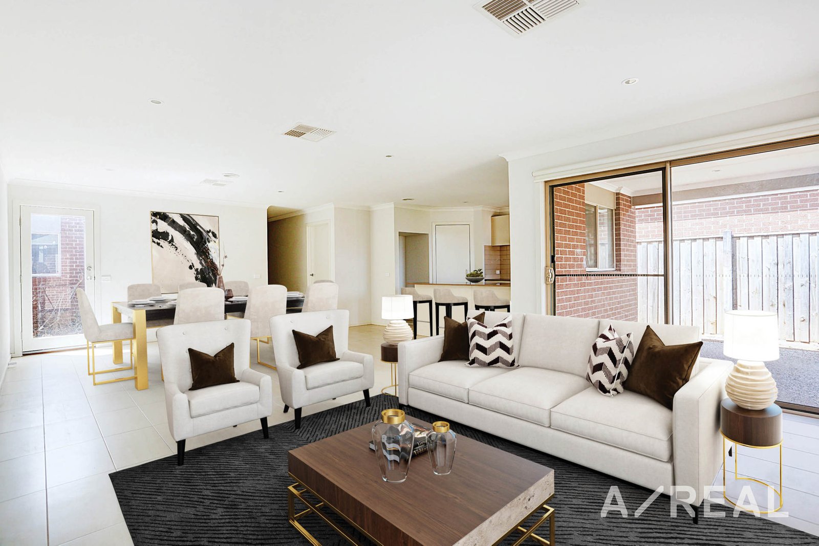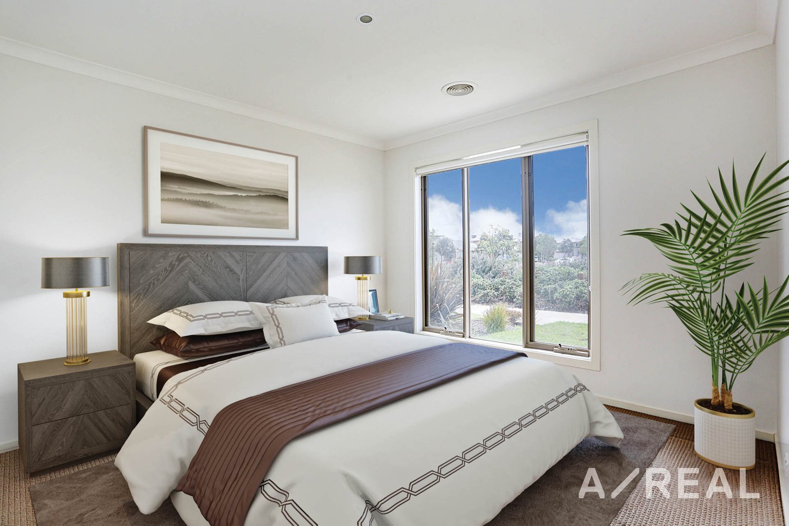 The light and bring interior is a comfortable and impressive space with high ceilings, downlighting and easy-care tiling in the living areas. Ducted air will keep the home comfortable all year round and double-hung windows will be ideal for adjusting the airflow throughout.