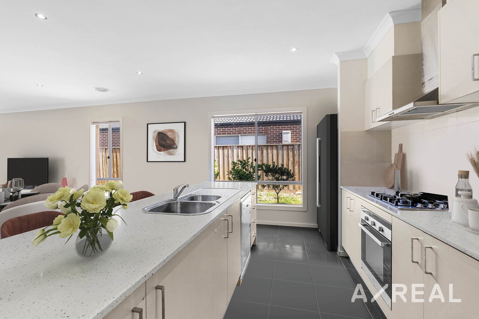 The home chef is sure to find inspiration in the well-equipped kitchen thanks to the ample preparation and storage space, gas cooktop, oven and dishwasher. There is bench seating for casual meals, as well as an adjacent open-plan living and dining room that are sure to be the heart of the home.