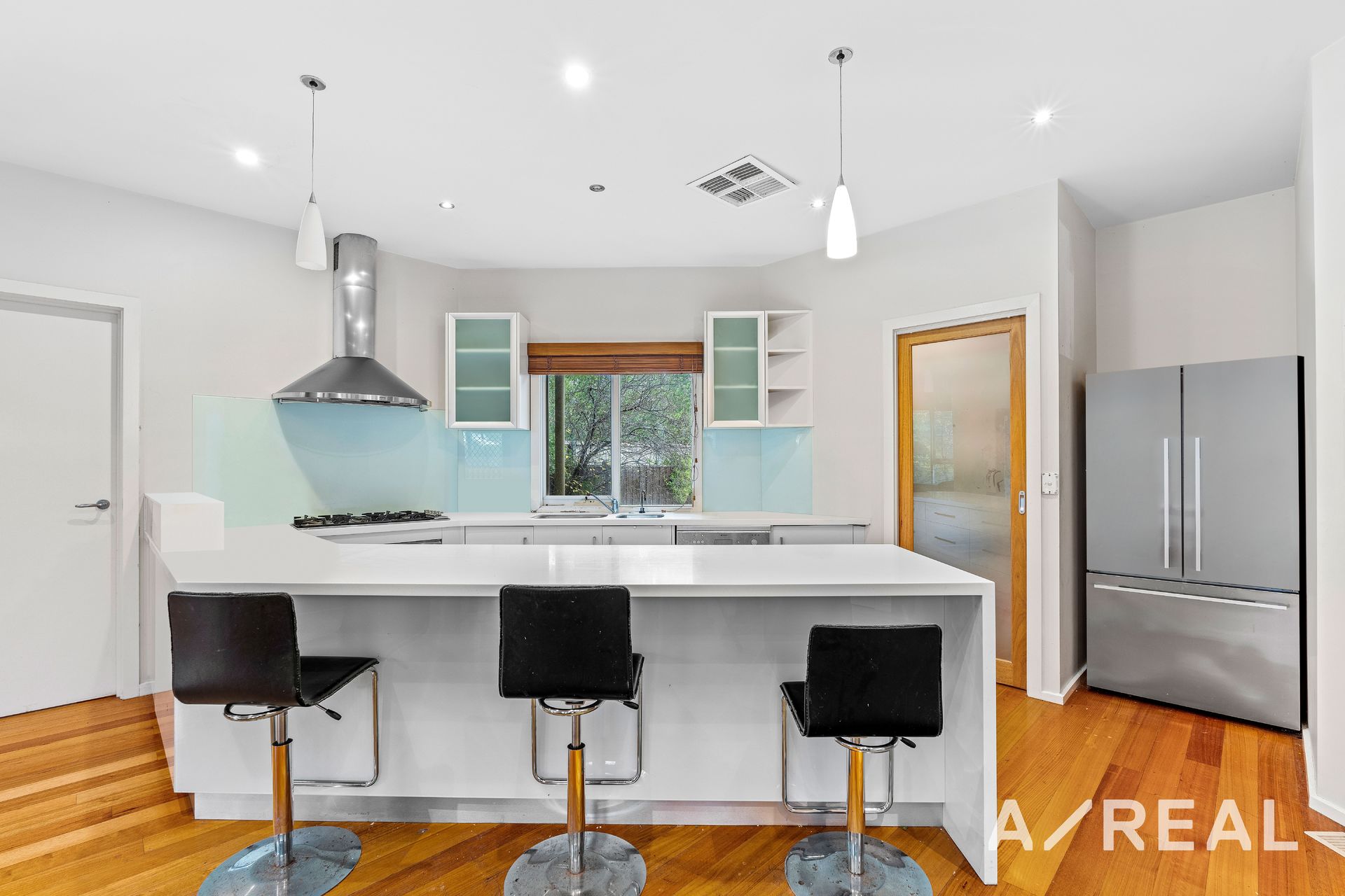 You'll delight in the gourmet kitchen's stainless steel cooking appliances, Corian stone bench tops and central island breakfast bar and walk-in pantry. The oversized bedrooms are fitted with built-in robes and the main bedroom has a walk-in robe and a spacious twin vanity ensuite. The bathrooms have crisp white tiling, and the family bathroom has a separate bath and shower with a detached toilet. Plus, there's a powder room downstairs.