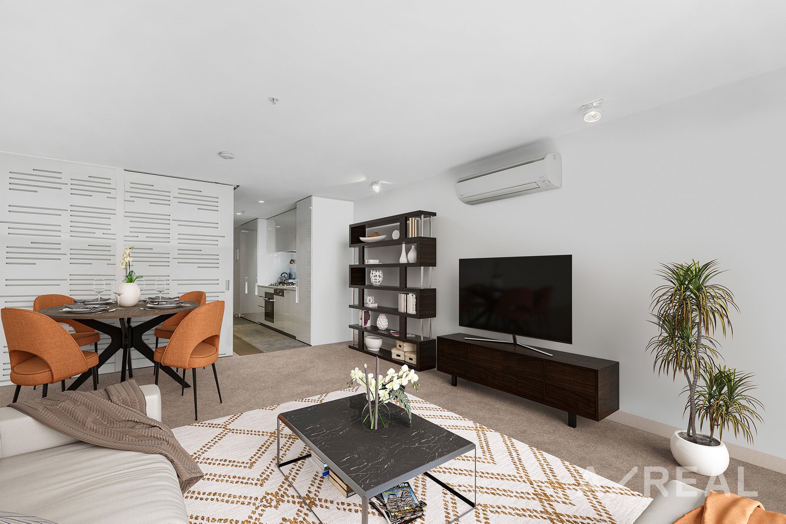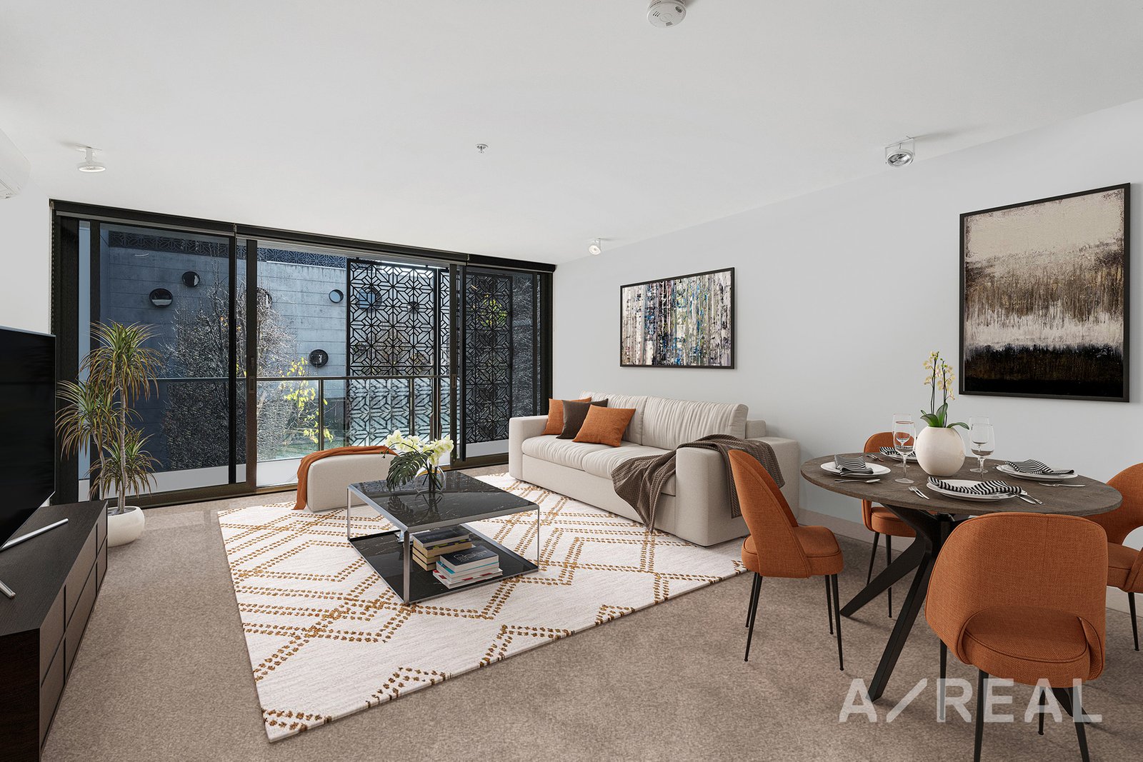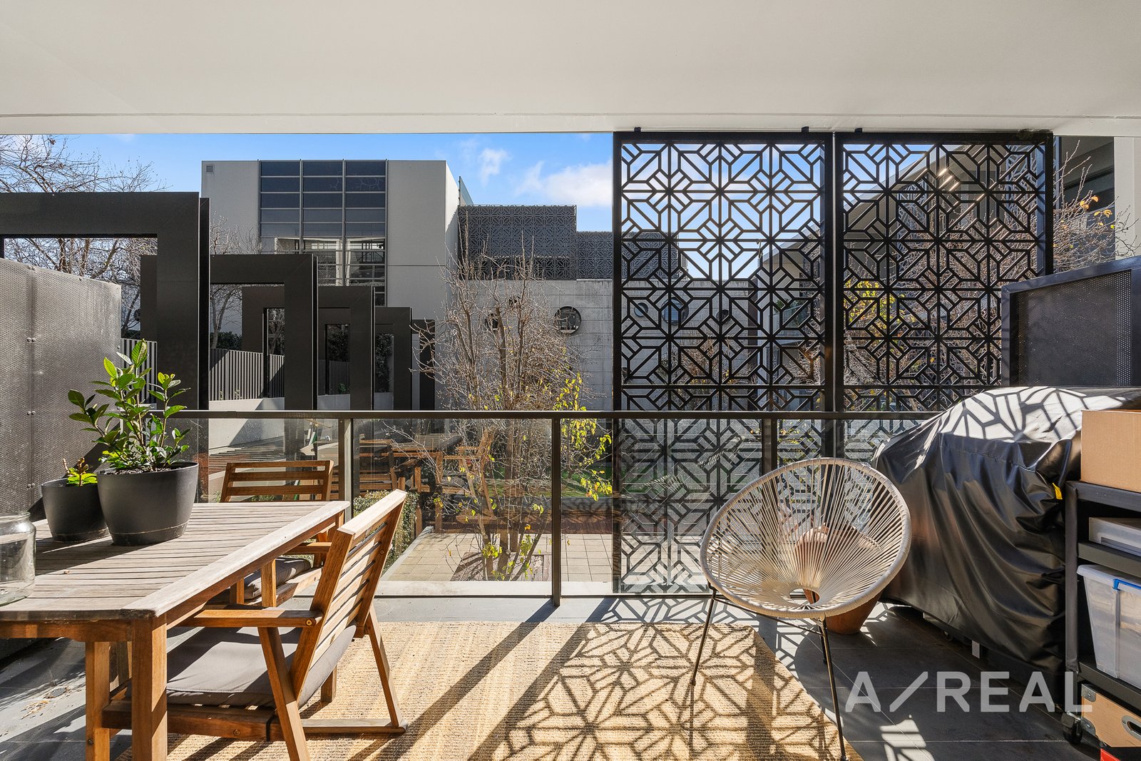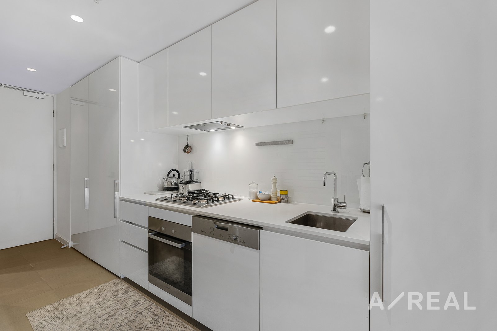 Inside, you'll be greeted by an entryway and sleek white kitchen adorned with stone countertops and integrated quality appliances, seamlessly transitioning into the comfortably carpeted living area. Step onto the stunningly styled balcony that basks in the warm embrace of the sun, offering ample space for al fresco dining and outdoor BBQs.