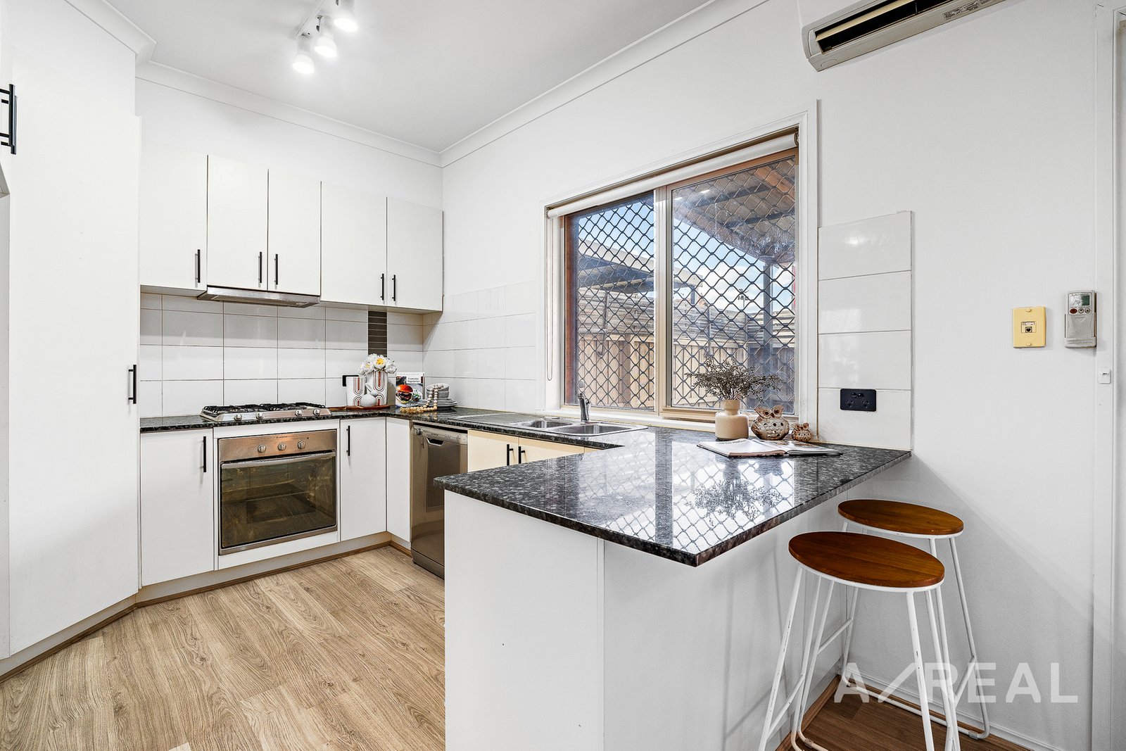 The stunning interior begins with a light-filled living area featuring quality floating flooring that leads to an open-design kitchen with Marble benchtops and Ariston stainless steel gas oven cooktop and a dishwasher. There is a Mitsubishi Electric Air-Cond, ducted heating throughout as well as a remote control lockup garage with internal entry, ample storage spaces and a beautiful low maintenance courtyard for all-year-round entertainment.