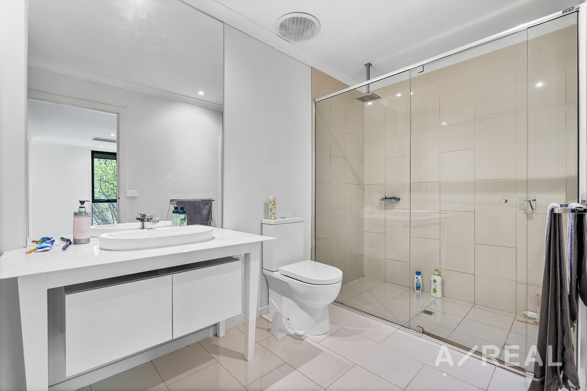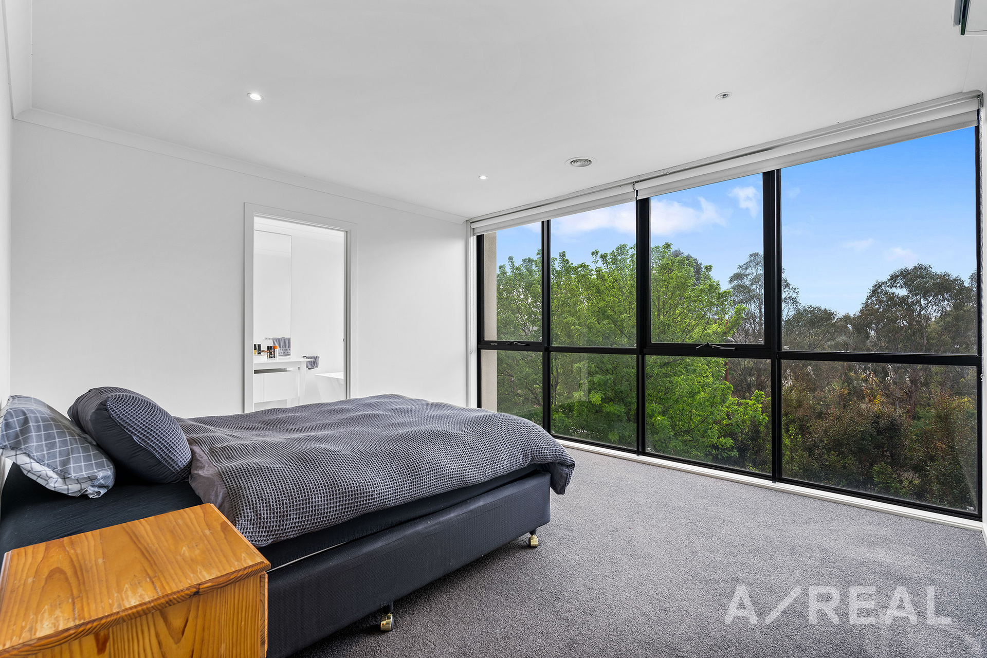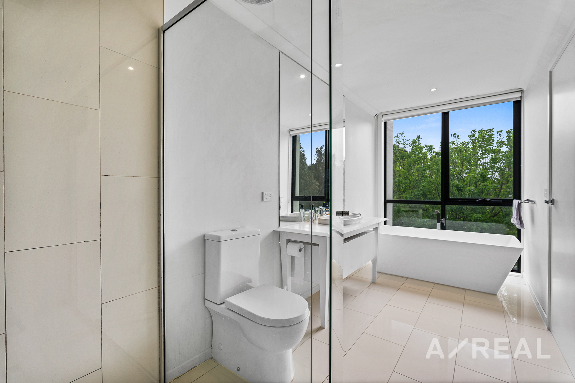 Upstairs, the master suite is a sanctuary of sophistication, featuring a walk-in robe, floor-to-ceiling windows that frame picturesque garden views, and an ensuite with a separate shower and a freestanding bathtub that invites you to relax and unwind.