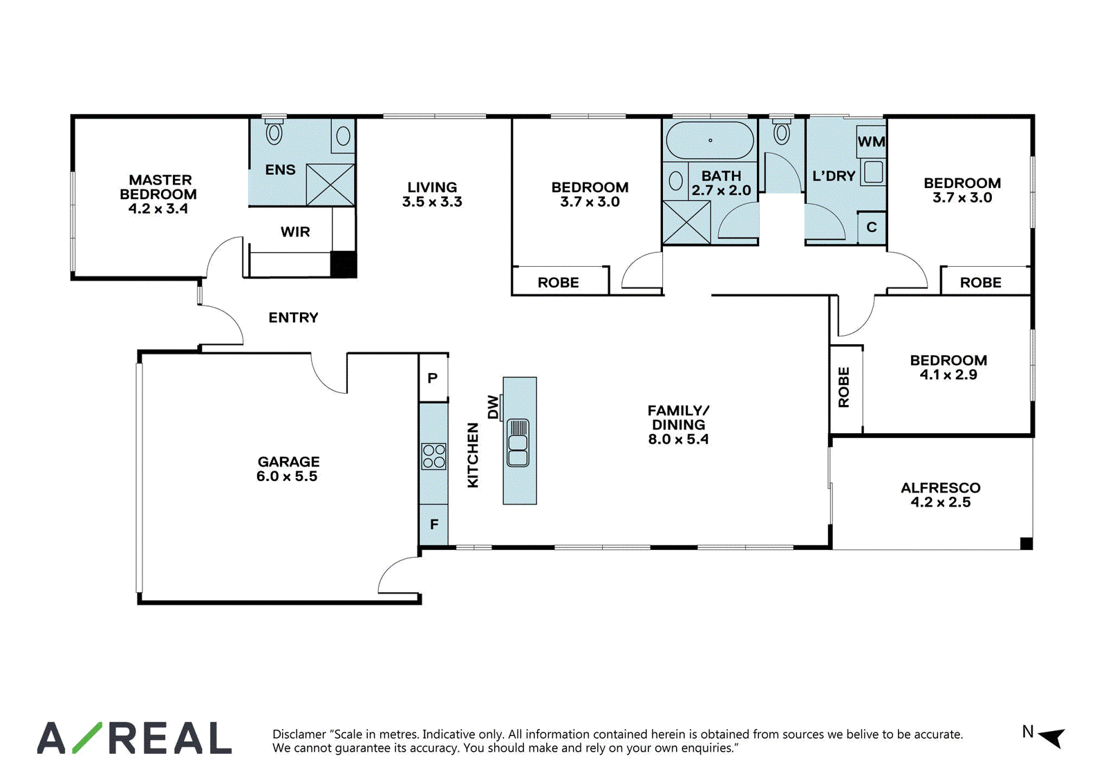 - Contemporary four bedroom, two bathroom home