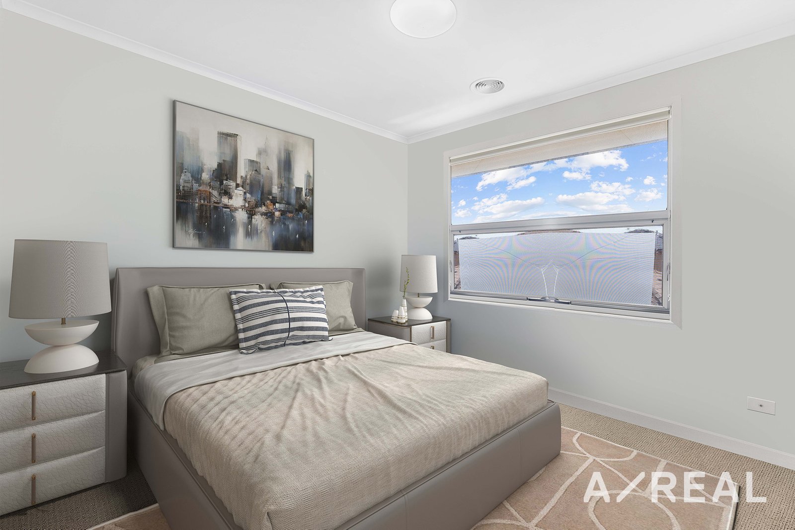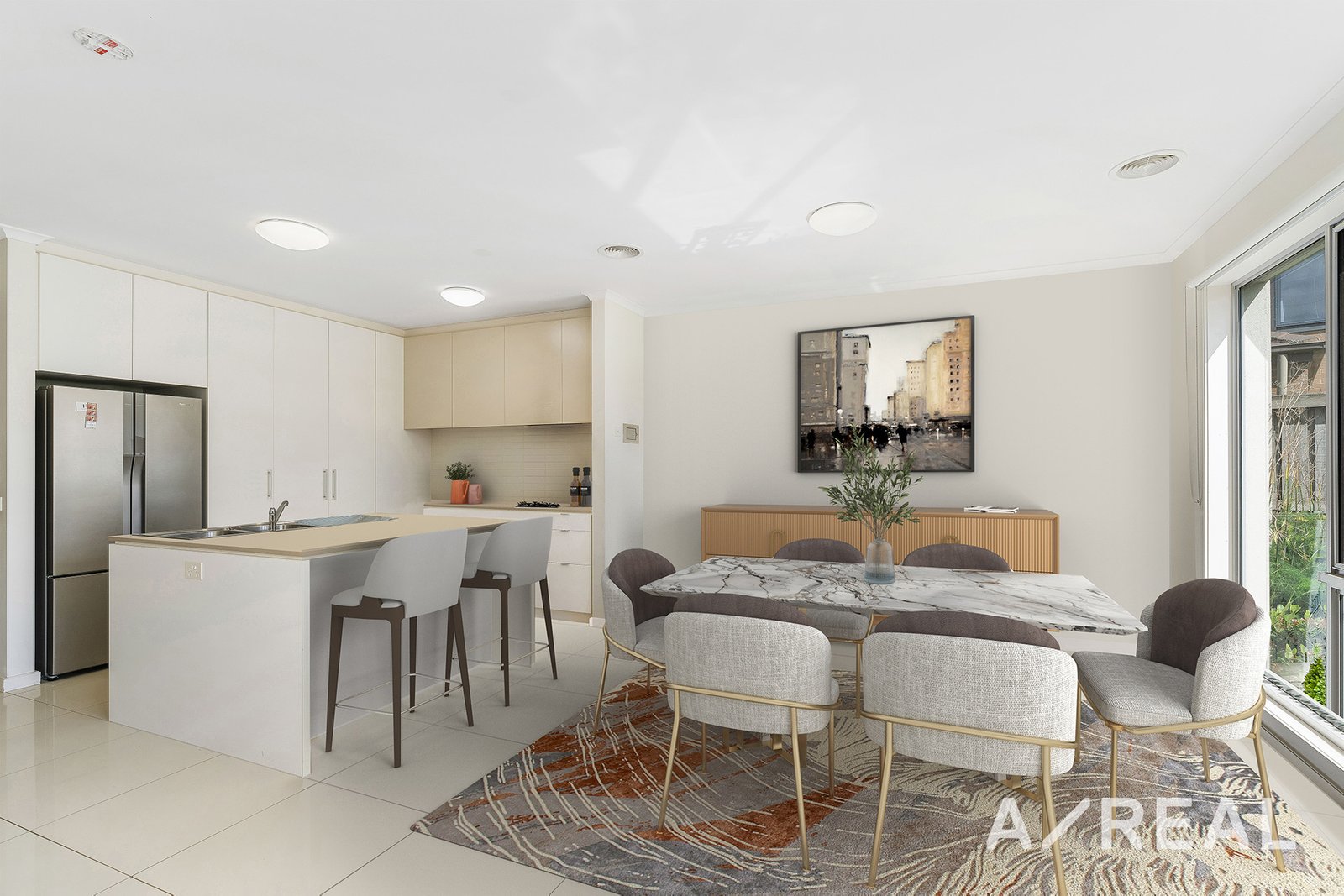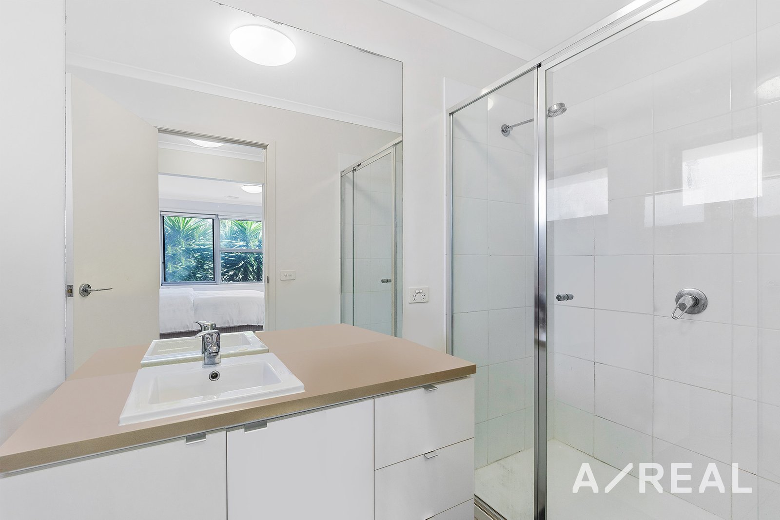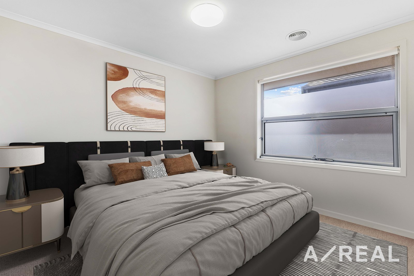 Upstairs, the master suite includes a walk-in robe and an ensuite bathroom. Two additional bedrooms have built-in robes and share a main bathroom with a shower-over-bath.