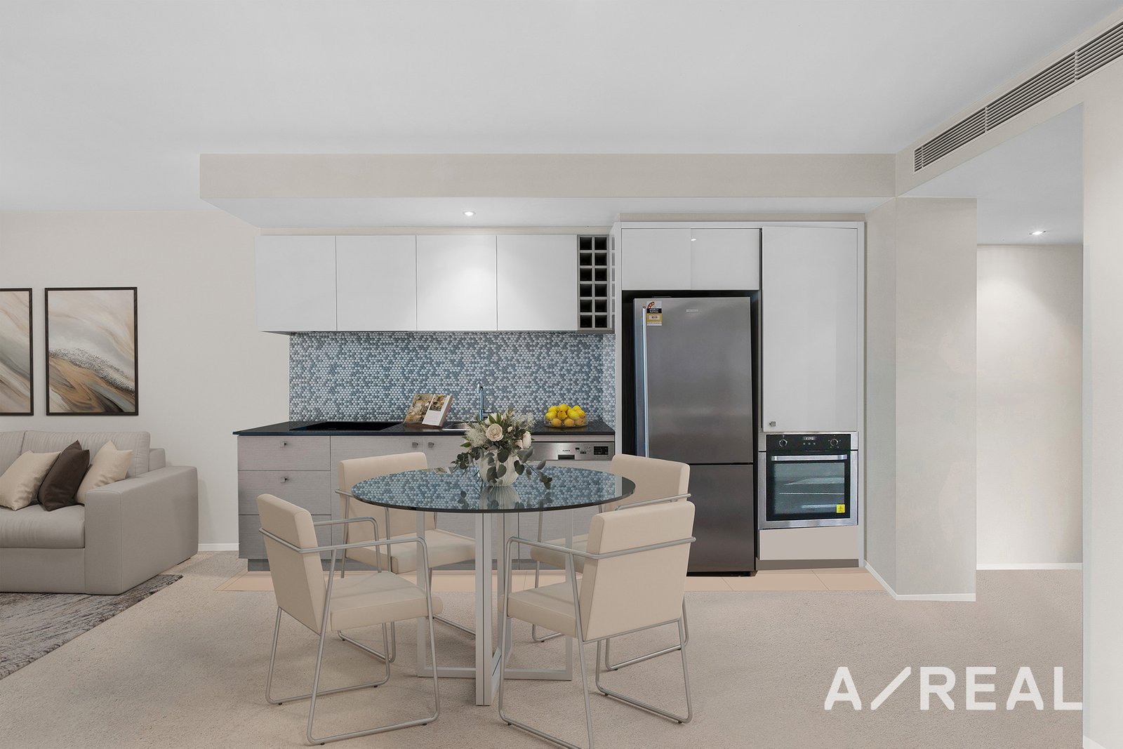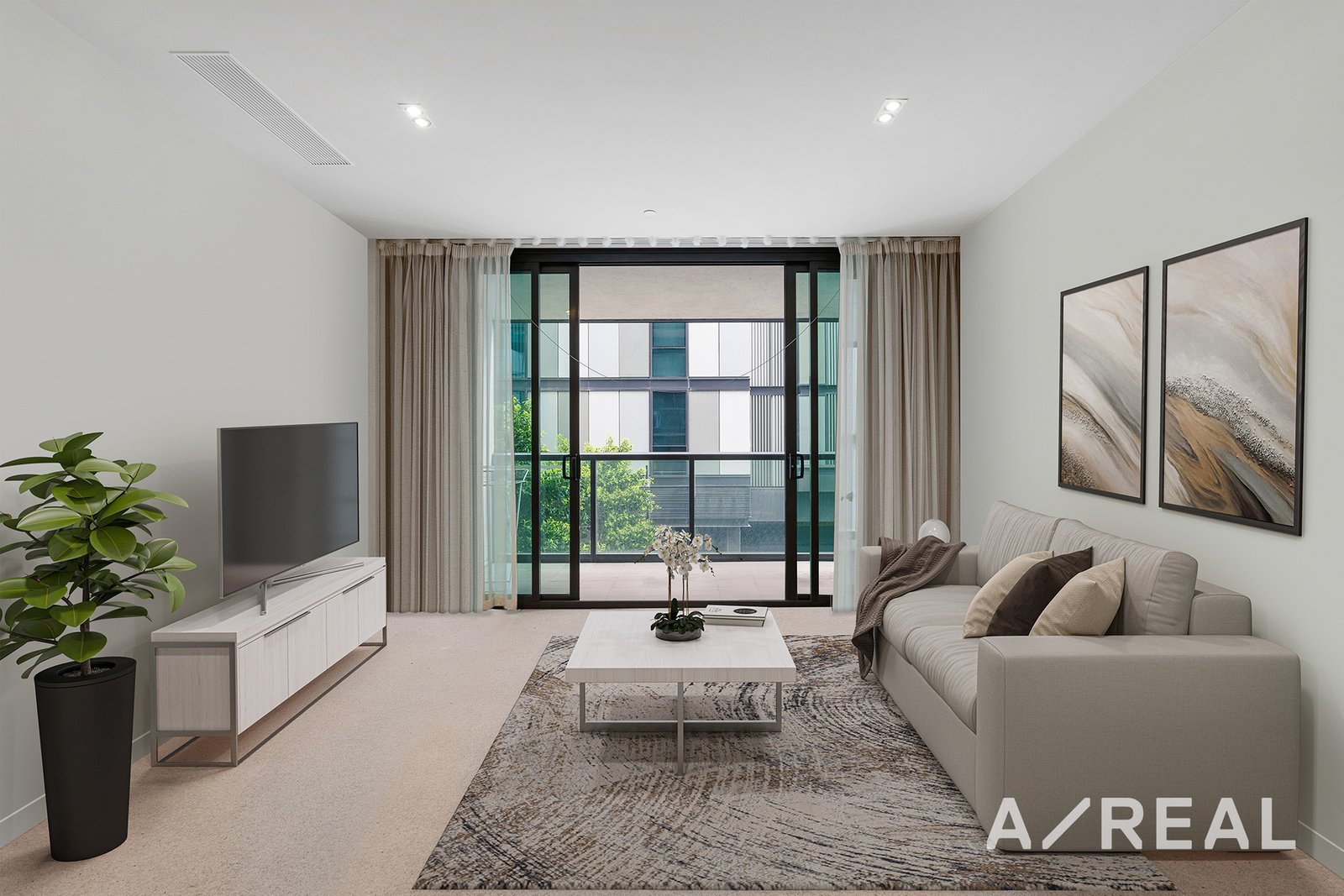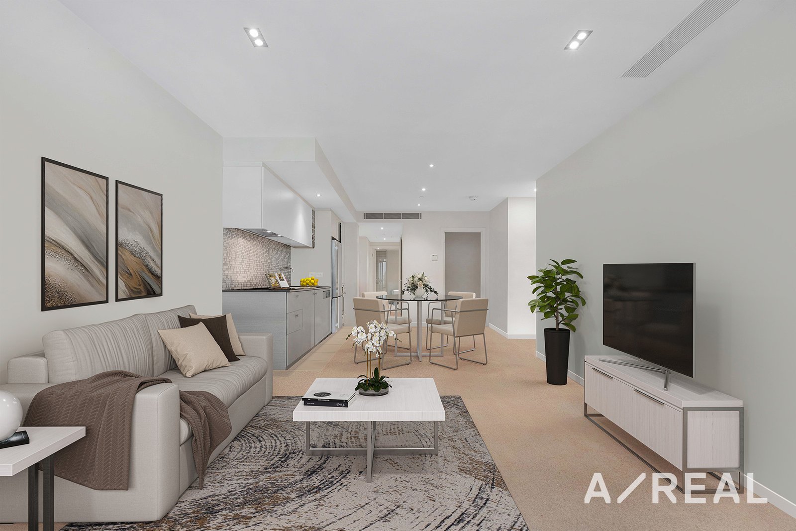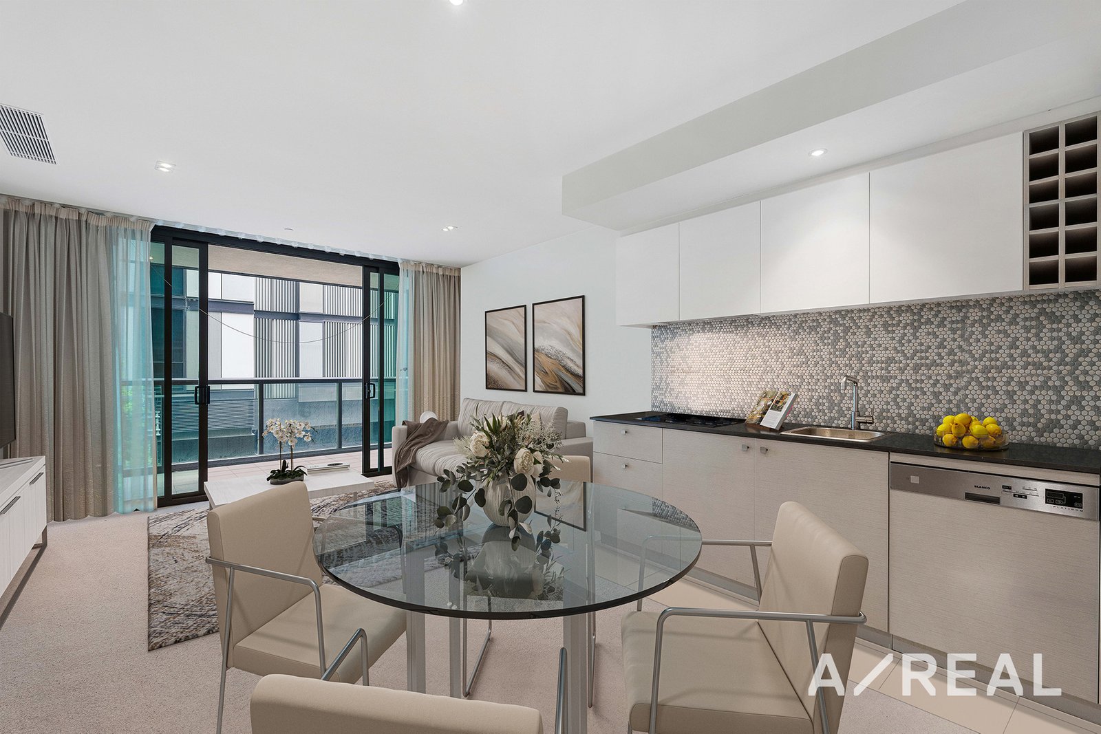 The spacious design showcases a light-filled living area that opens to a private balcony, perfect for your morning coffee or evening sunsets. Preparing meals will be a breeze in the sleek and modern kitchen with an integrated dishwasher and stone countertops.