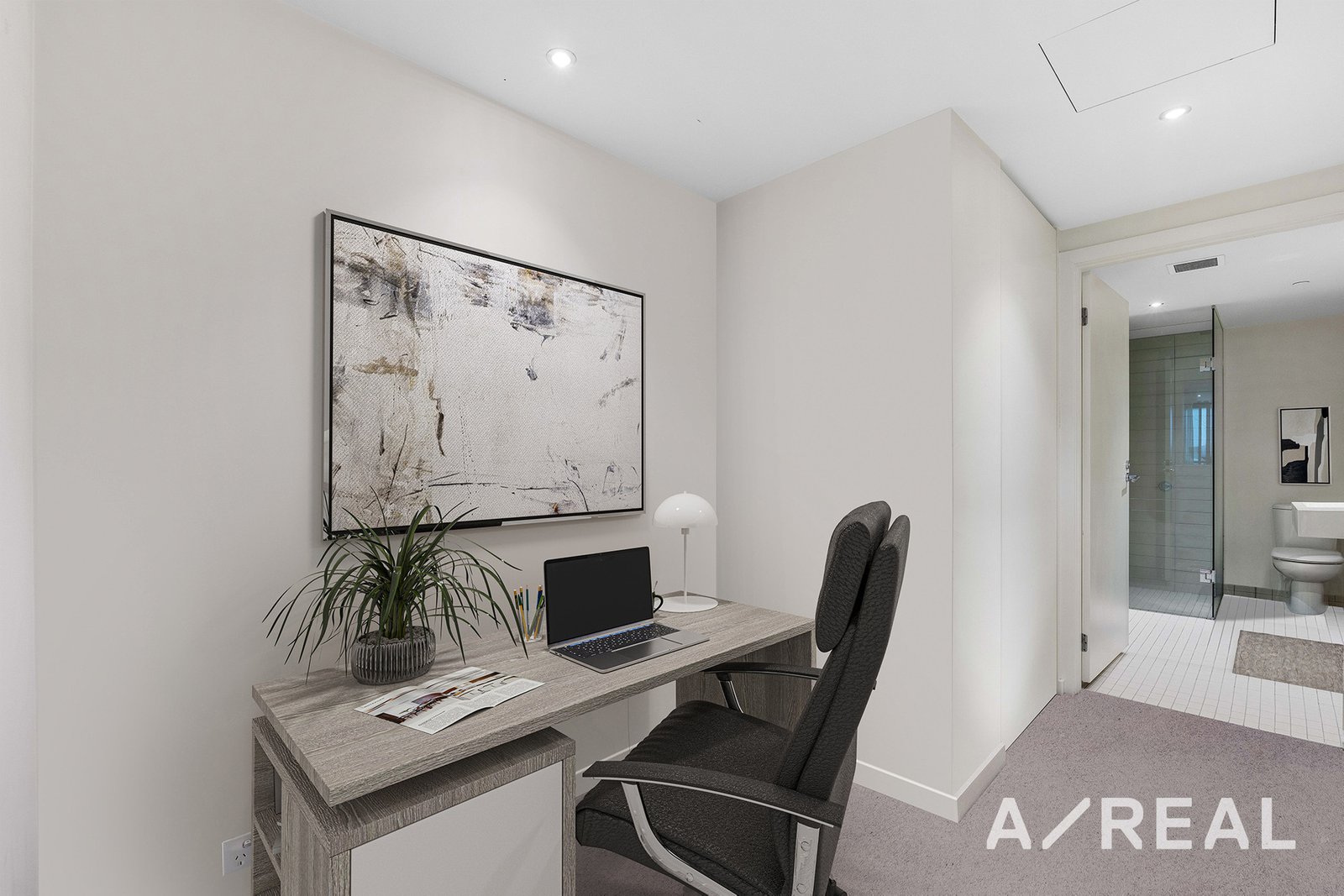 Another stand out features in this well-designed unit is a tucked-away study nook and a large storage cupboard to provide the ideal workspace and organization.