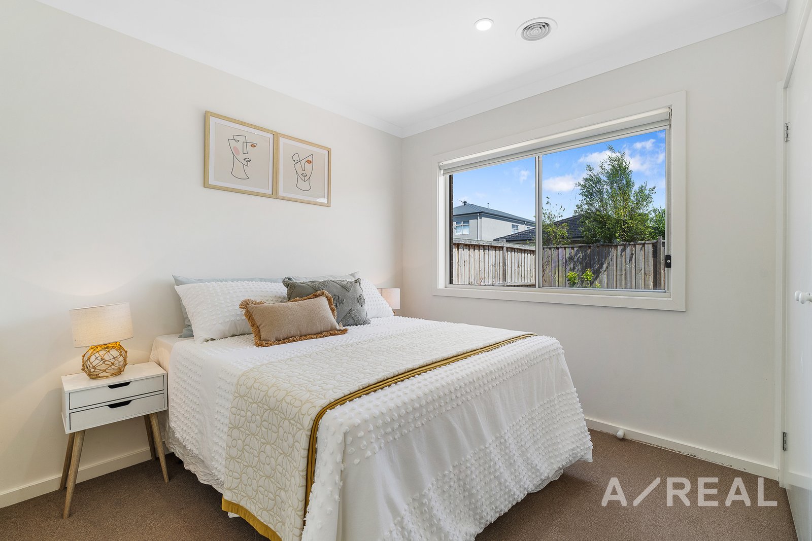 The carpeted bedrooms, each adorned with built-in robes, provide a serene retreat for every family member. The main bathroom boasts ample vanity storage, while a separate shower and bath offer a touch of luxury. The master suite is a relaxing sanctuary with a walk-in robe and a twin-vanity ensuite.