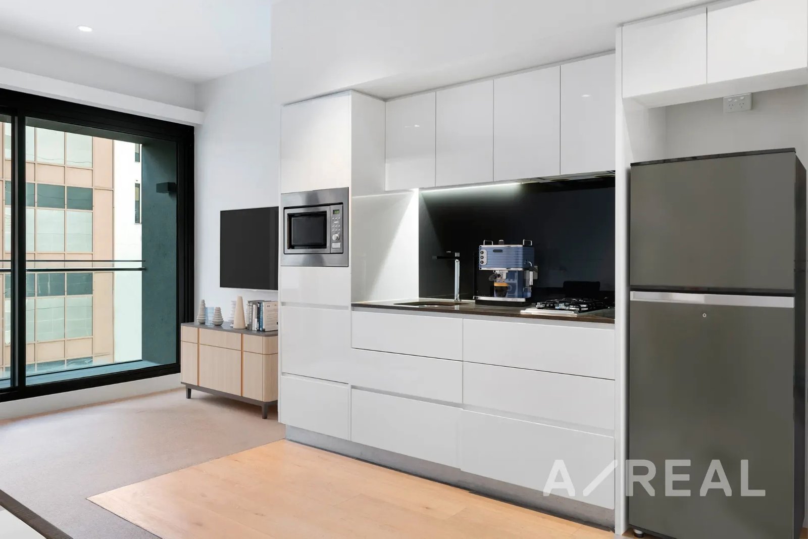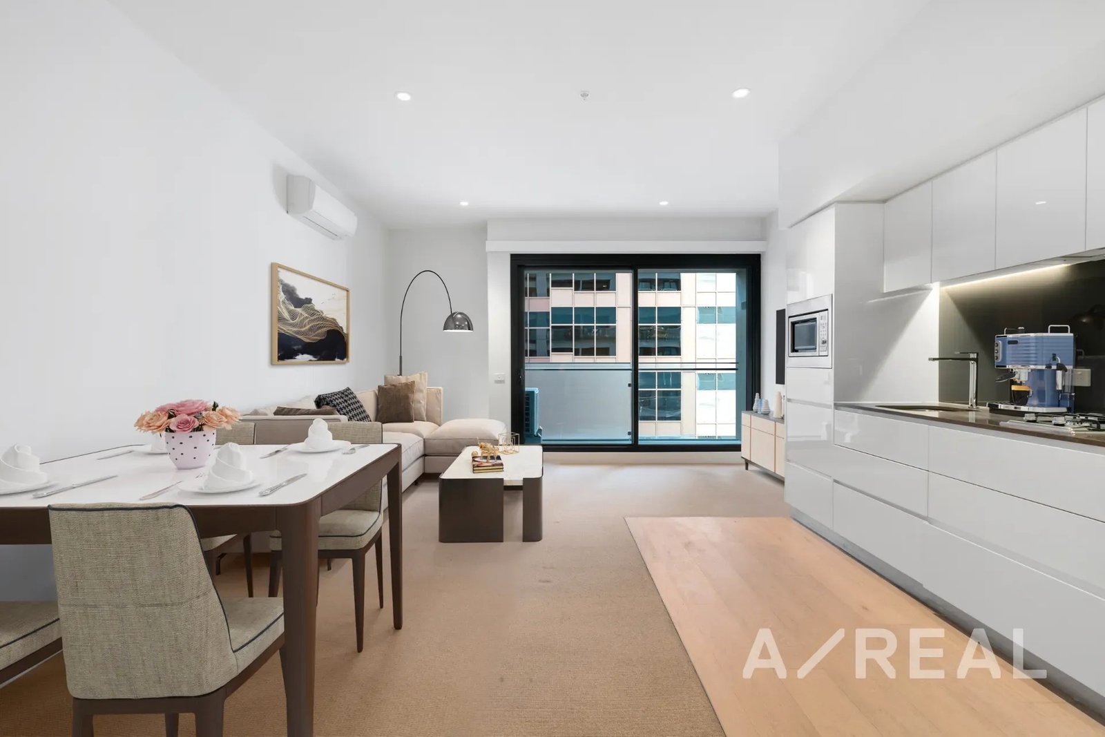 The airy atmosphere flows seamlessly throughout the open-plan living and dining area, enhanced by a striking stone kitchen with stainless steel appliances, split system heating/AC and north facing private balcony – perfect for entertaining.
