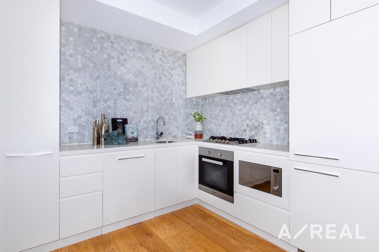 Awash with natural light and accented by timber floors and full-height glazing, cutting-edge 1 bedroom, 1 bathroom interiors offer spacious open-plan living/dining, sleek kitchen flaunting Miele appliances, stone surfaces and mosaic tiled splash back, split system heating/AC and huge entertainer's balcony with beautiful views.