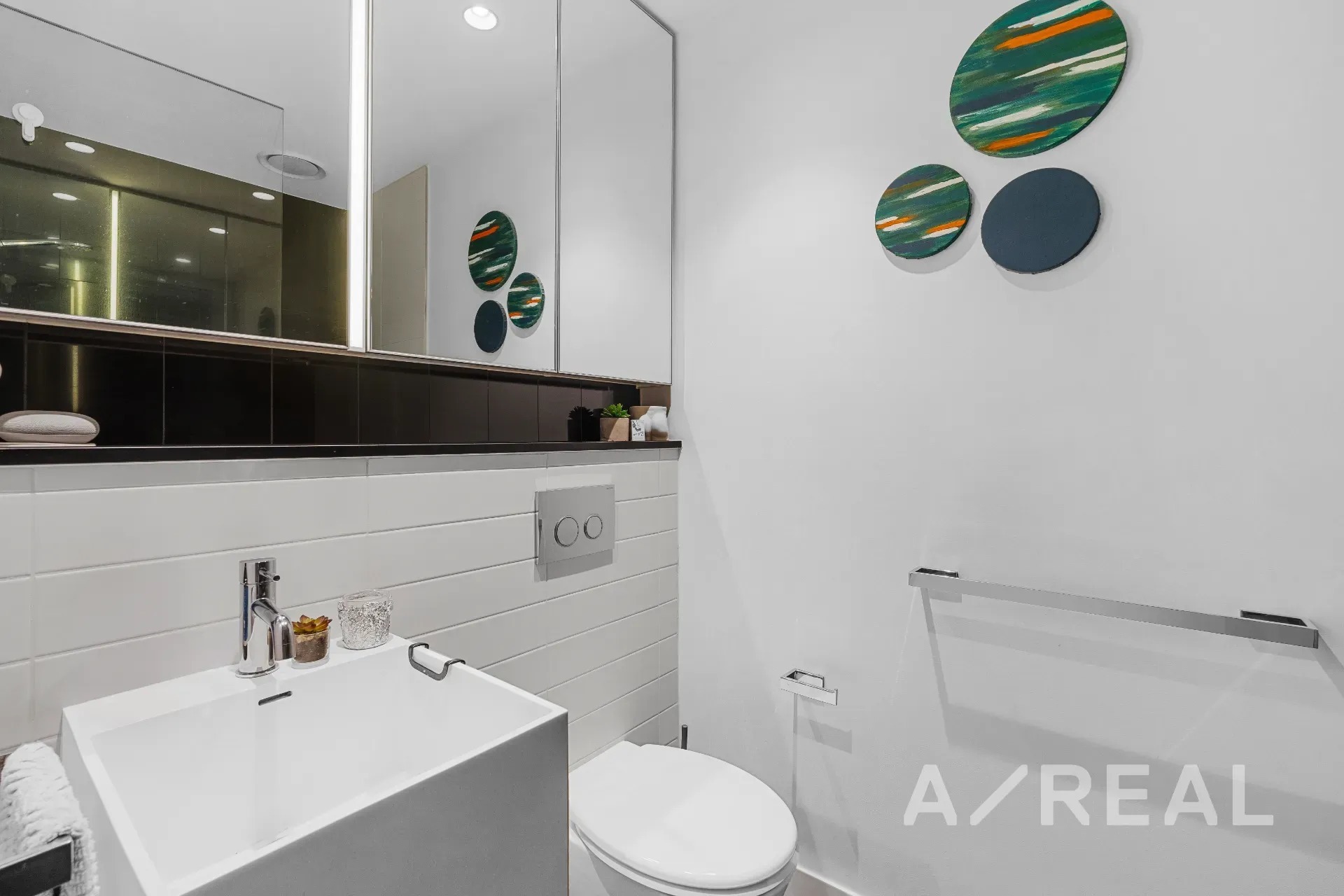 Arrive home to the allure of vibrant, modern interiors, with the sleek contemporary kitchen making a bold statement, complete with Smeg appliances, mirrored splashbacks and under cabinet lighting adding to the appeal.