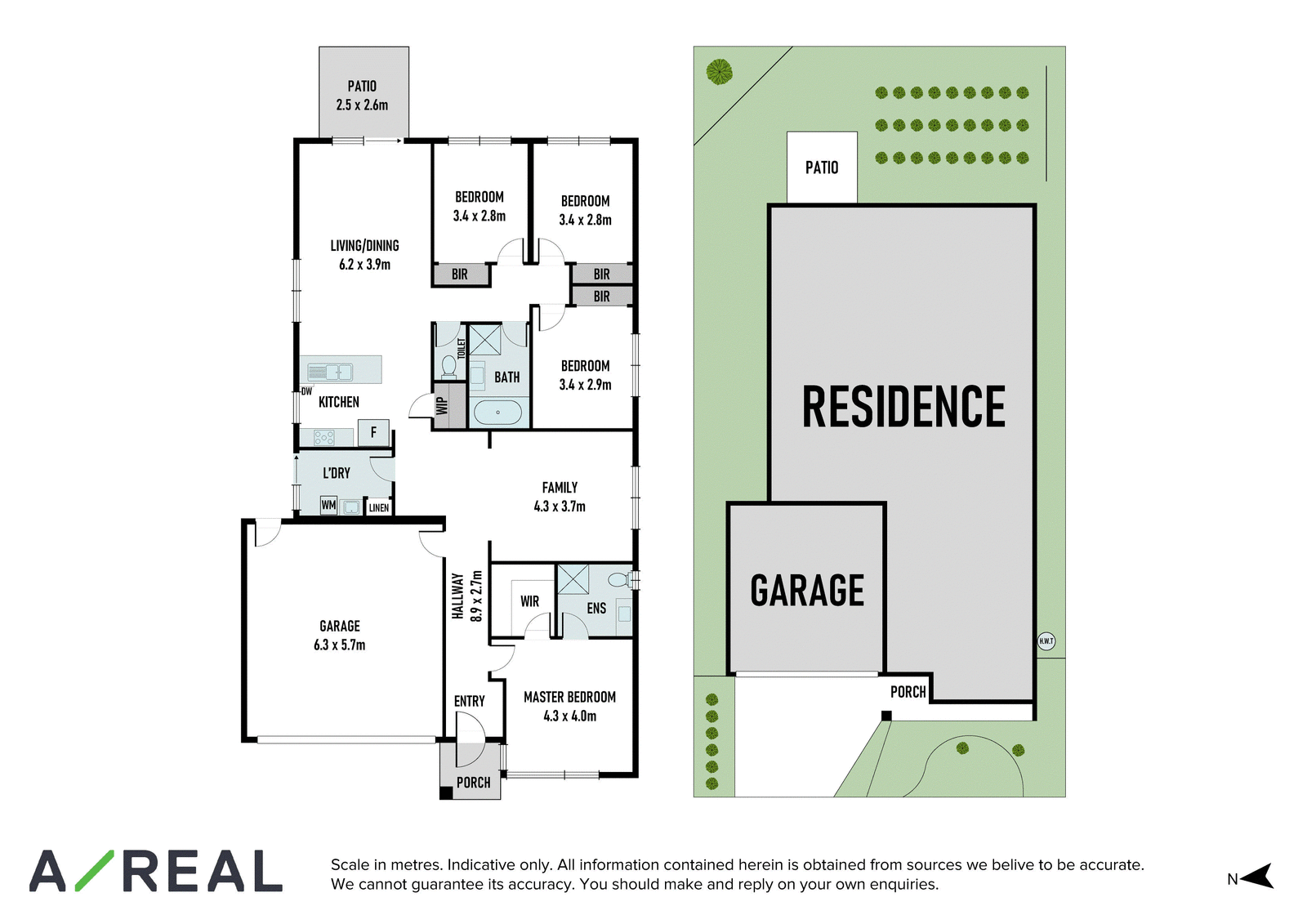 The main bedroom is privately zoned and fitted with an ensuite/WIR, and accompanied by 3 additional robed bedrooms and striking bathroom.