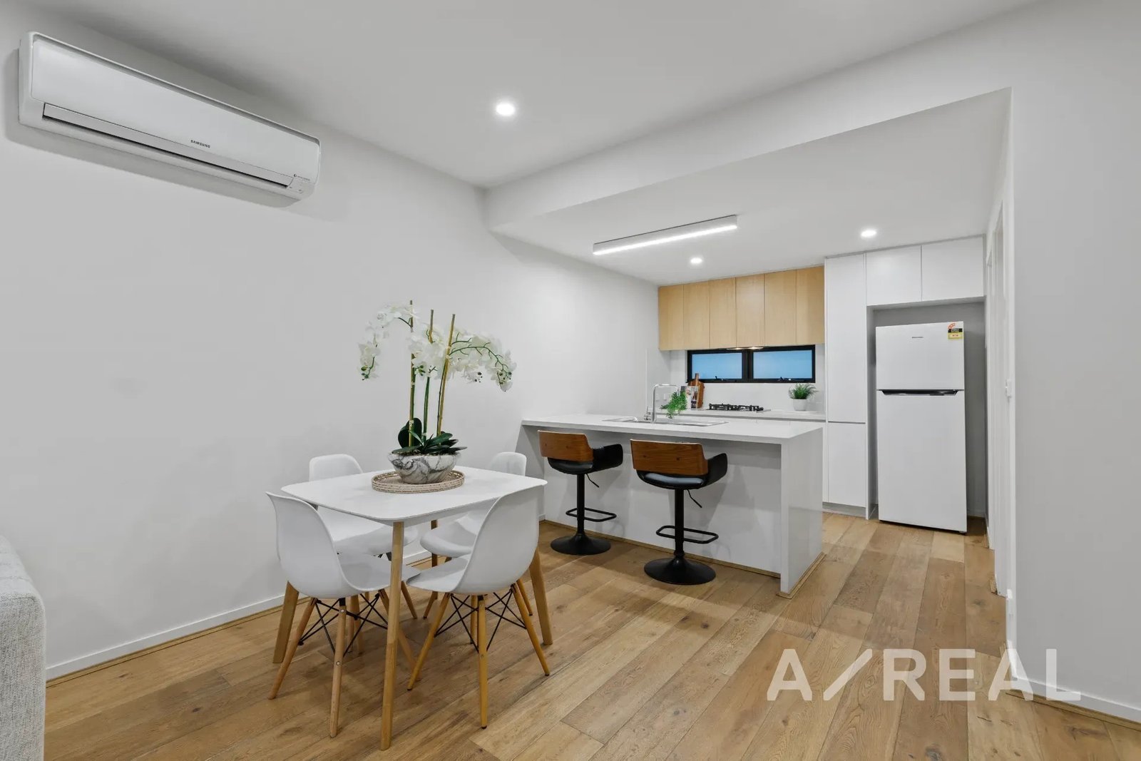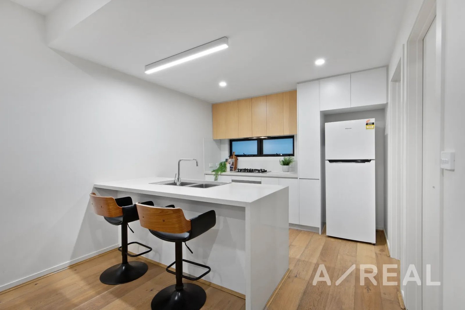 Enjoy easy-care living at its finest, with timber floors, sublime finishes and northern light creating a spectacular impact throughout the open-plan living/dining environment, served by a streamlined kitchen showcasing Bosch appliances and gleaming stone surfaces.