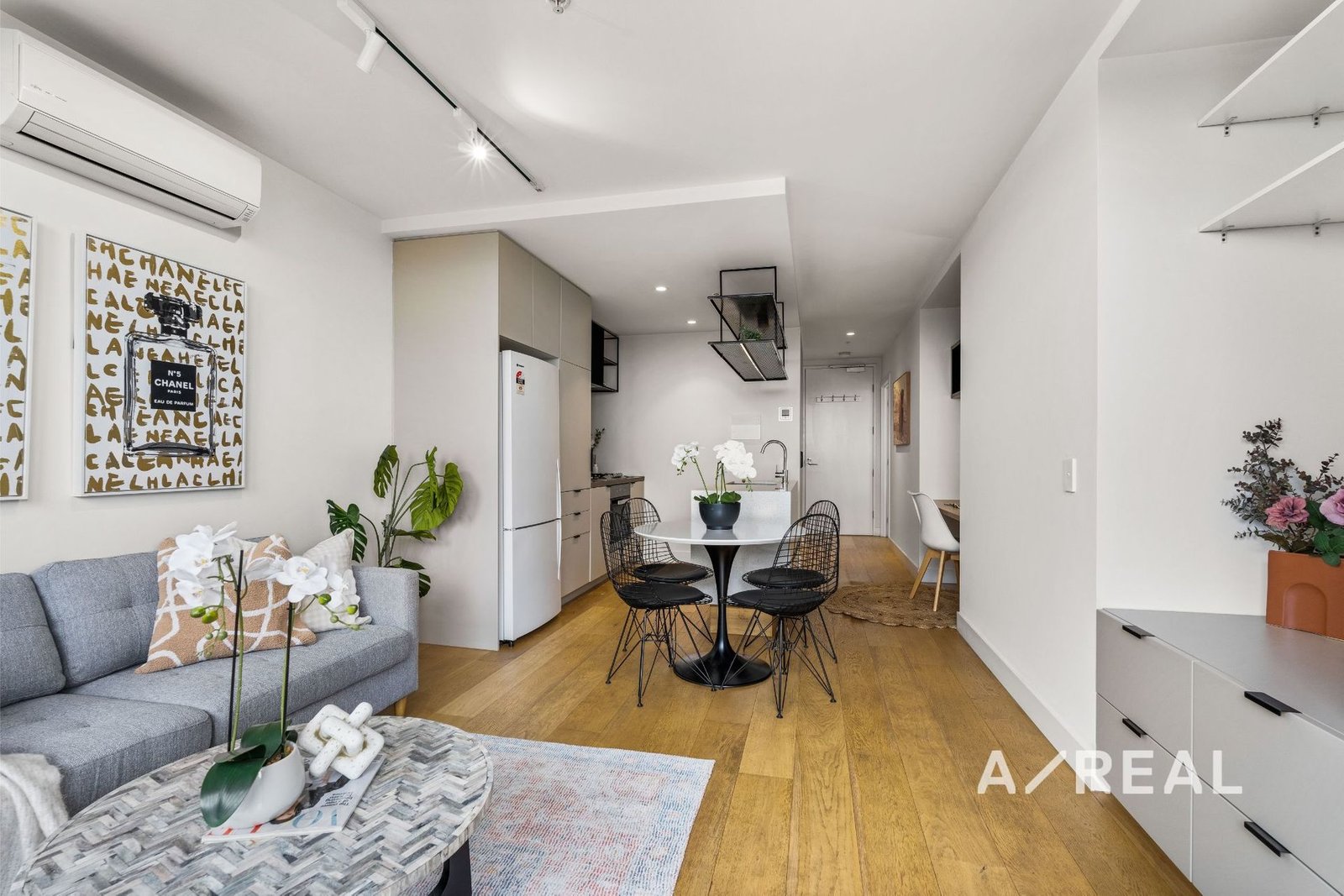 Those who love to cook are sure to feel inspired in the sleek well-equipped kitchen which features a gas cooktop, ample storage space and sweeping benchtops. From here you can move into the adjacent air-conditioned living and dining room, or step through the floor-to-ceilings glass sliding doors to take in the enviable city views from the private balcony.