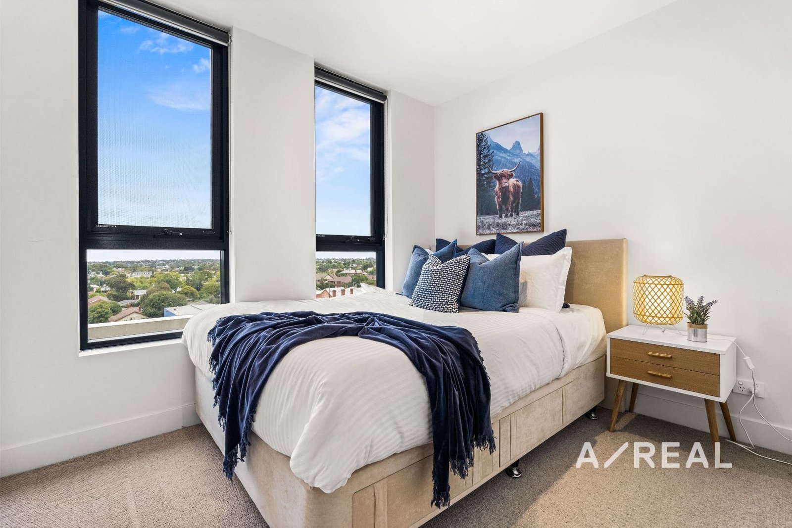 Stepping inside you'll discover high ceilings overhead, wide-plank timber flooring underfoot in the main living spaces, carpets in the bedrooms, muted colour tones and plenty of natural light throughout.
