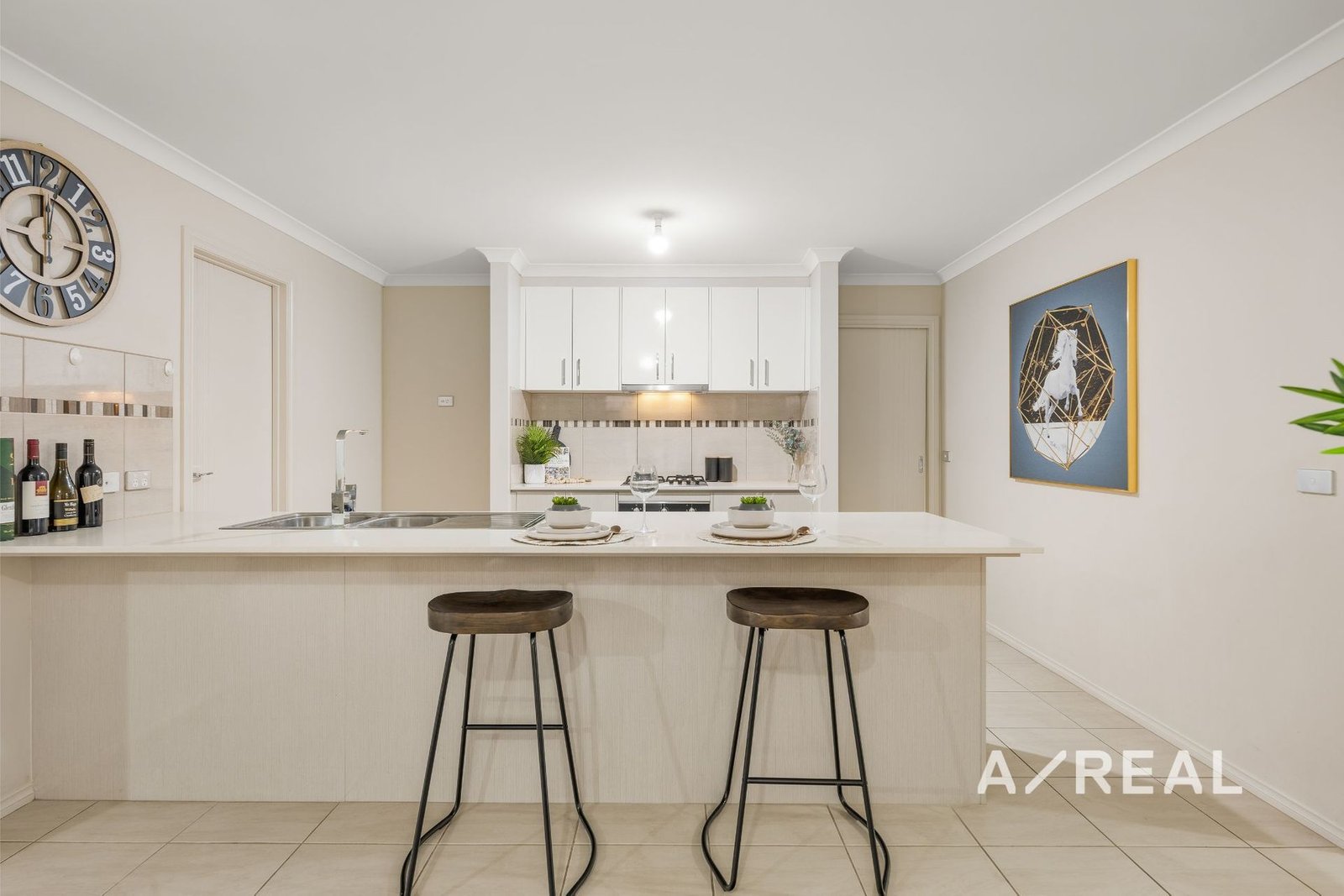 The single-level floorplan is beautifully appointed and highlighted by stylish elements that enhance the open-plan living/dining area, as well as a modern stone-topped kitchen with walk-in pantry and private north-facing alfresco – perfect for outdoor entertaining.