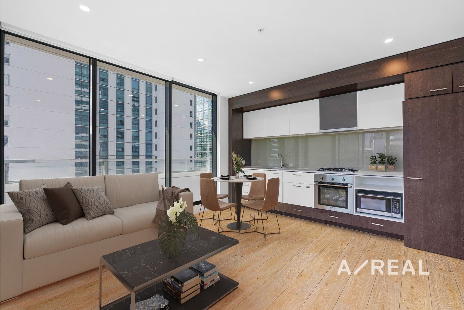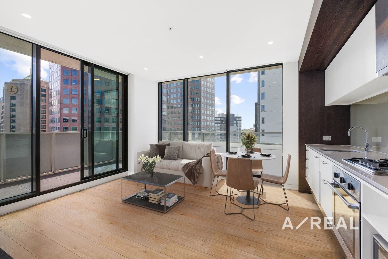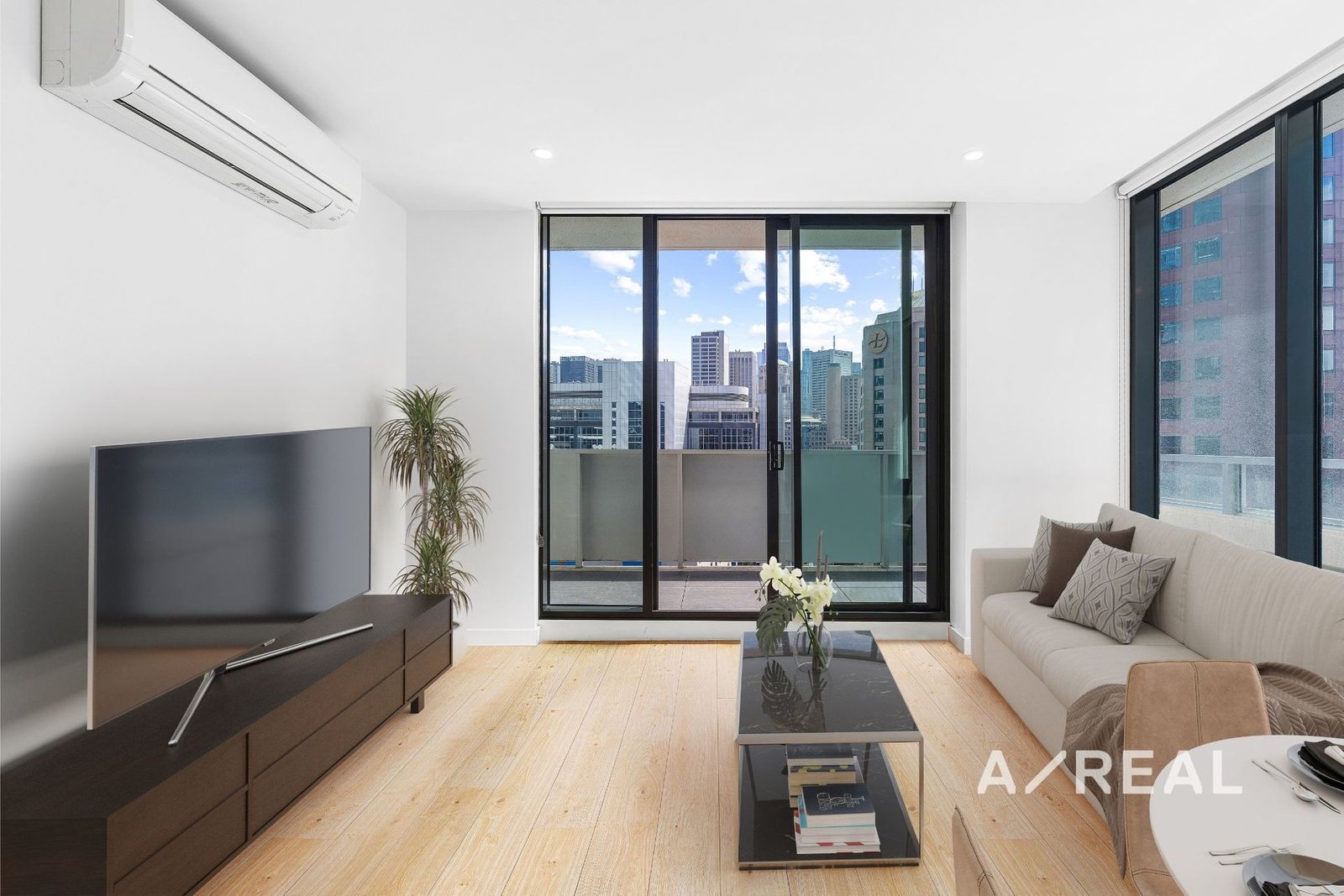 As you step inside, you'll be greeted by an abundance of natural light that fills the spacious living area, thanks to the floor-to-ceiling glass, offering breathtaking views of the city skyline from your private balcony. The modern timber floors and air conditioning create a comfortable and stylish atmosphere throughout.