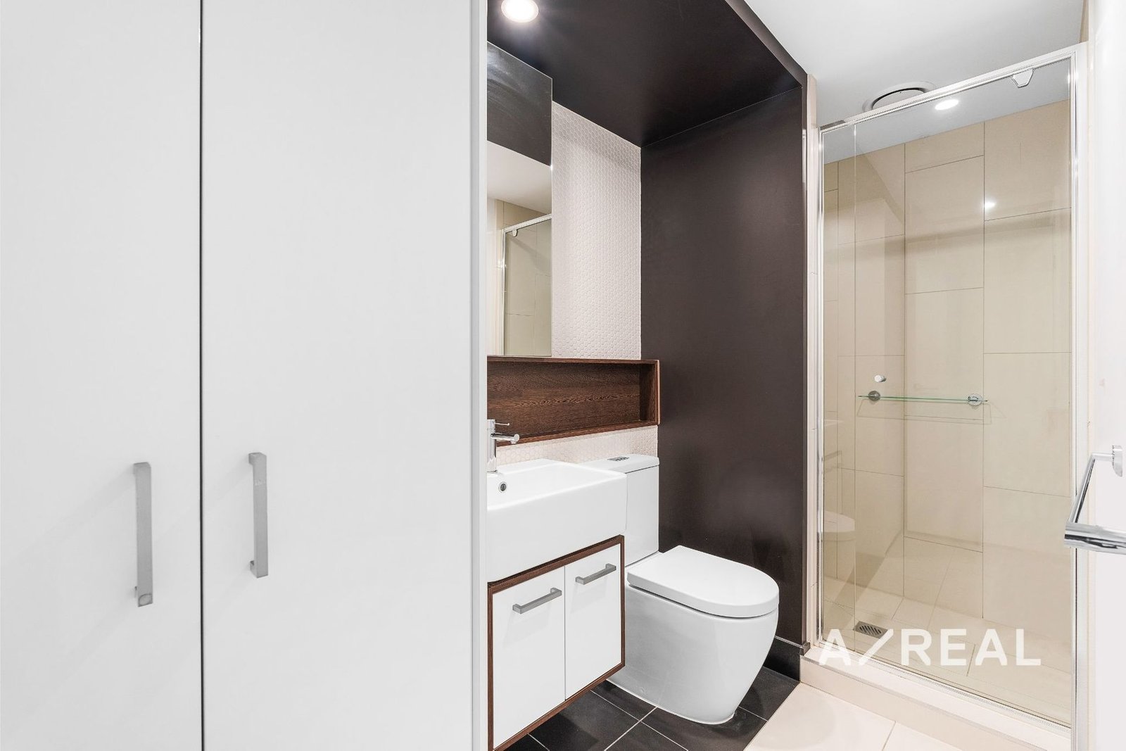 The two luxurious bathrooms are appointed with mirrored vanities, and the central bathroom even includes a concealed European laundry for added convenience. Additional storage is provided with a spacious storage cage in the secure car park.