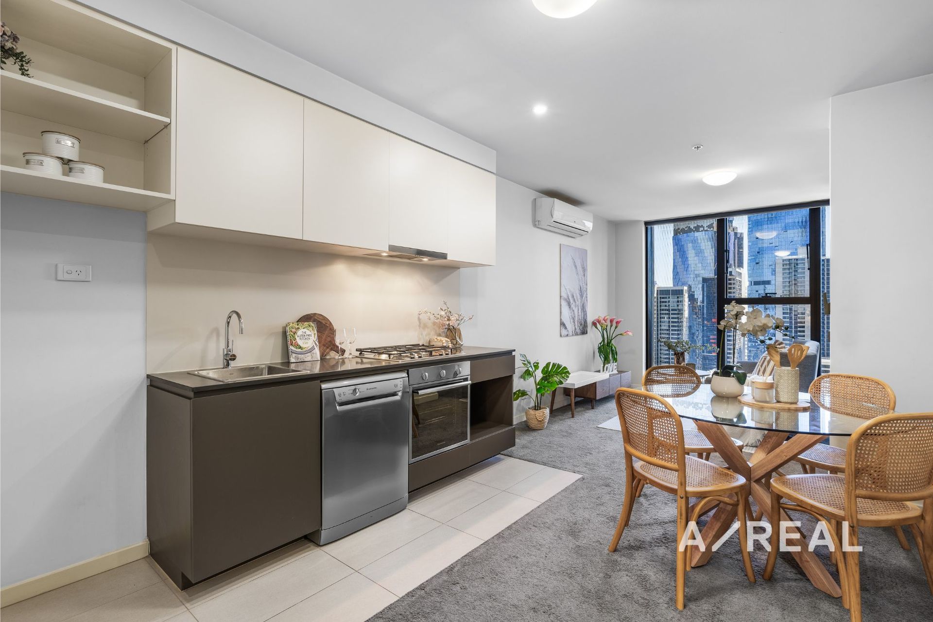Meticulously detailed interiors showcase an open-plan environment, where living/dining merges seamlessly with the well-appointed kitchen, and complemented by a north-facing balcony.