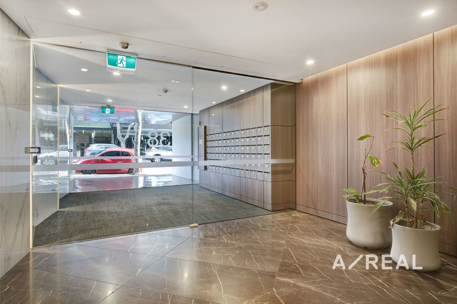 A chic bathroom, full-width balcony, reverse-cycle heating/AC, secure basement car space and intercom entry all elevate this impressive designer retreat.