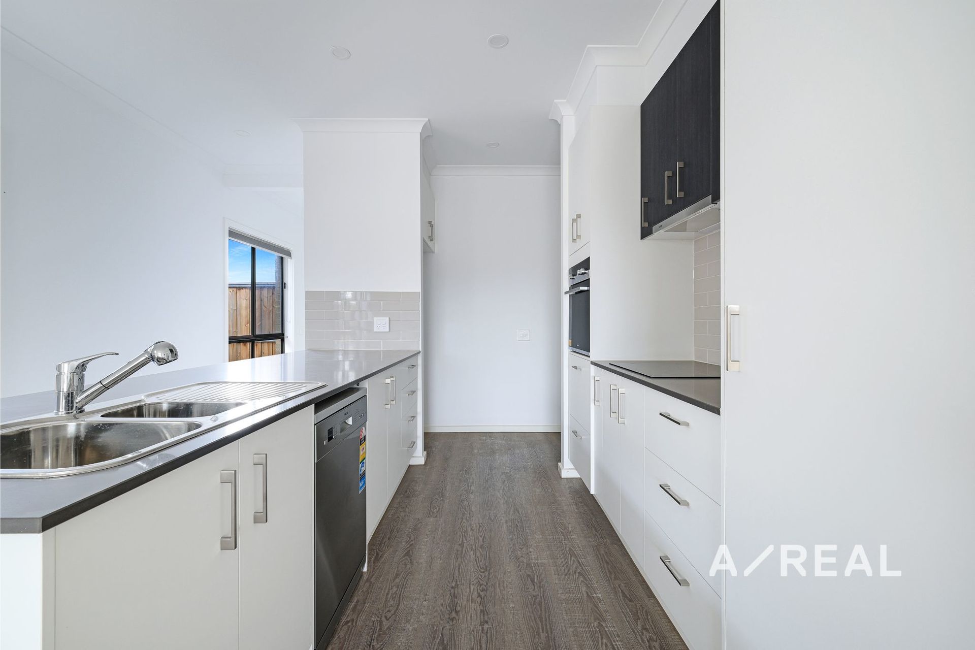Warmly welcoming, saturating natural light flows through the open-plan living/dining environment, served by a sleek, well-appointed kitchen featuring quality appliances.