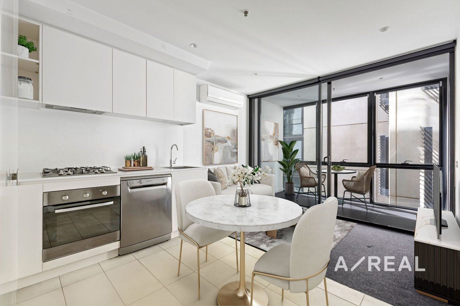 Defined by sleek contemporary style, floor-to-ceiling windows capture glorious natural light that filters through the open-plan living/dining area, complemented by a stylish stone-topped kitchen and enclosed balcony- perfect for entertaining.