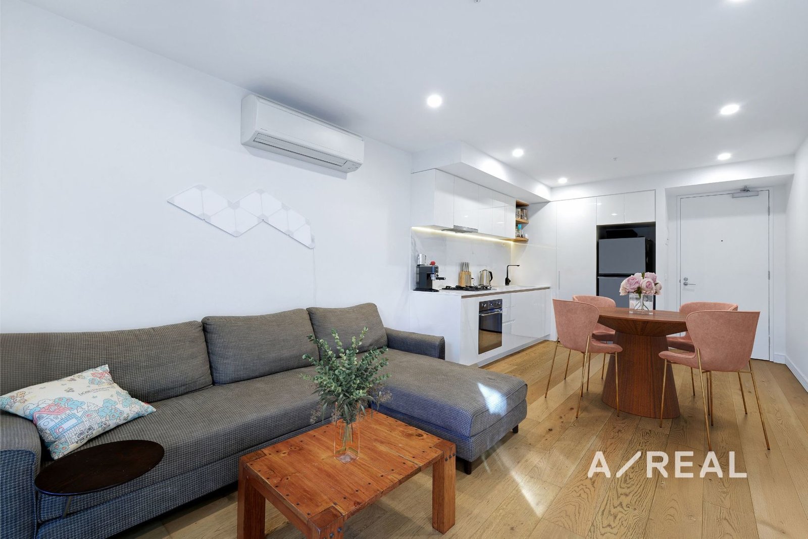 Underscored by timber floors and finished to elite standards, the open-plan living/dining area is soaked in natural light, and served by a sleek kitchen luxuriously appointed with stone benchtops, premium appliances and ample storage.